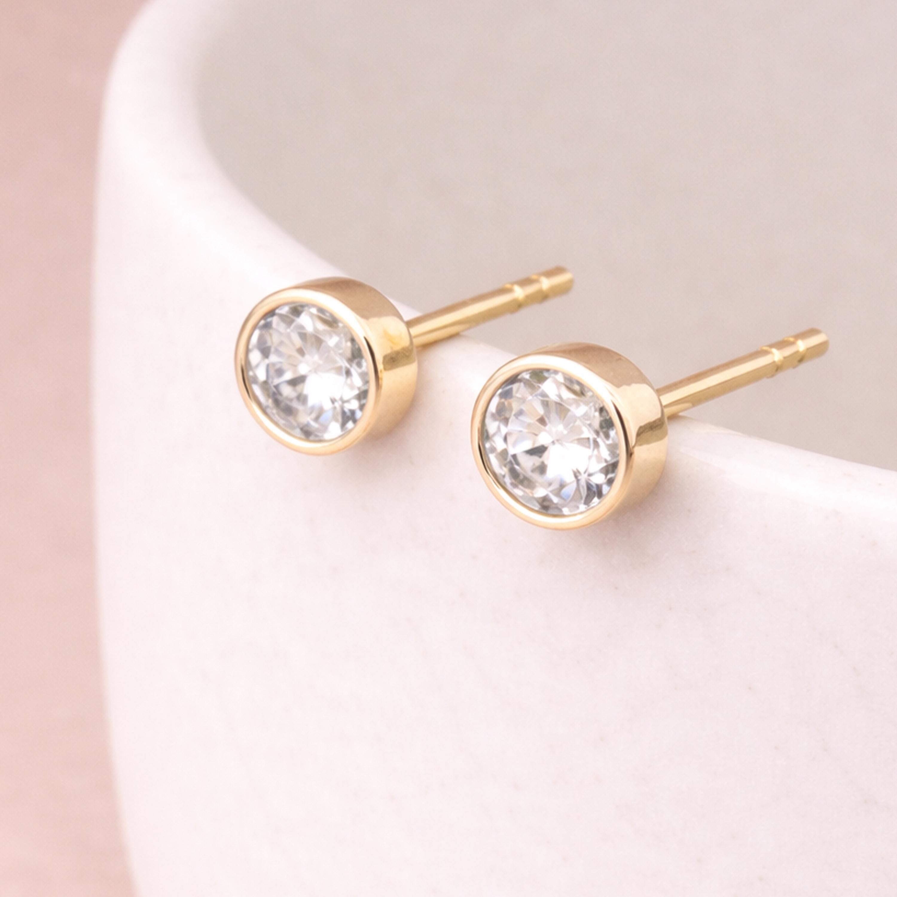 Each pair is carefully made in our UK studio, with the stone securely bezel set to maximise light reflection while remaining smooth and comfortable for everyday wear. Diamond is the birthstone for April and symbolises strength, clarity, love, and new beginnings, making these earrings a thoughtful birthday gift or a meaningful everyday piece.