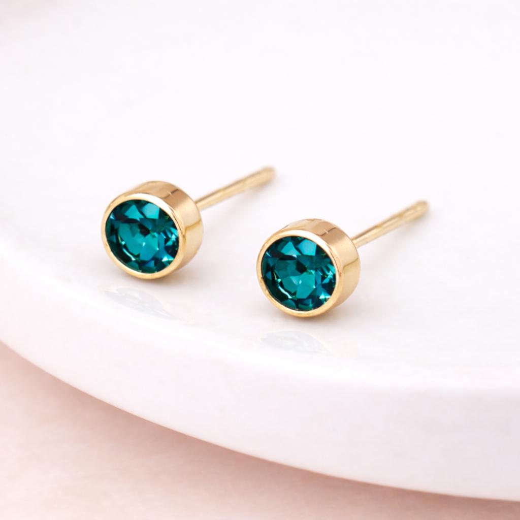 These December birthstone stud earrings are handcrafted from solid 925 sterling silver with 18ct yellow gold plating and set with a blue topaz coloured cubic zirconia, creating a crisp icy blue focal point with a clean, elegant finish.