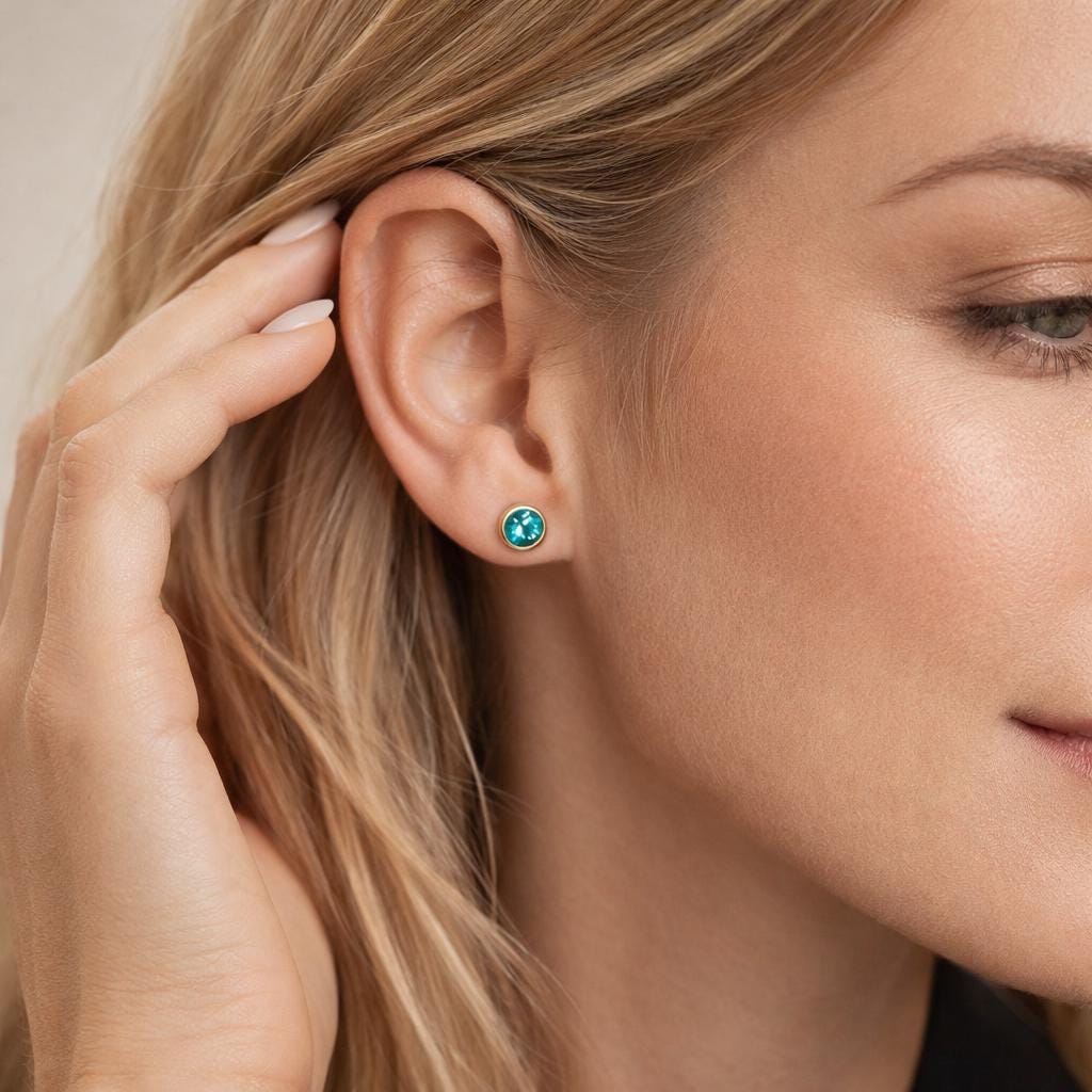 ♡ Style Tip: Perfect for everyday wear, these blue topaz-tone studs pair beautifully with simple outfits and other gold or mixed-metal jewellery.