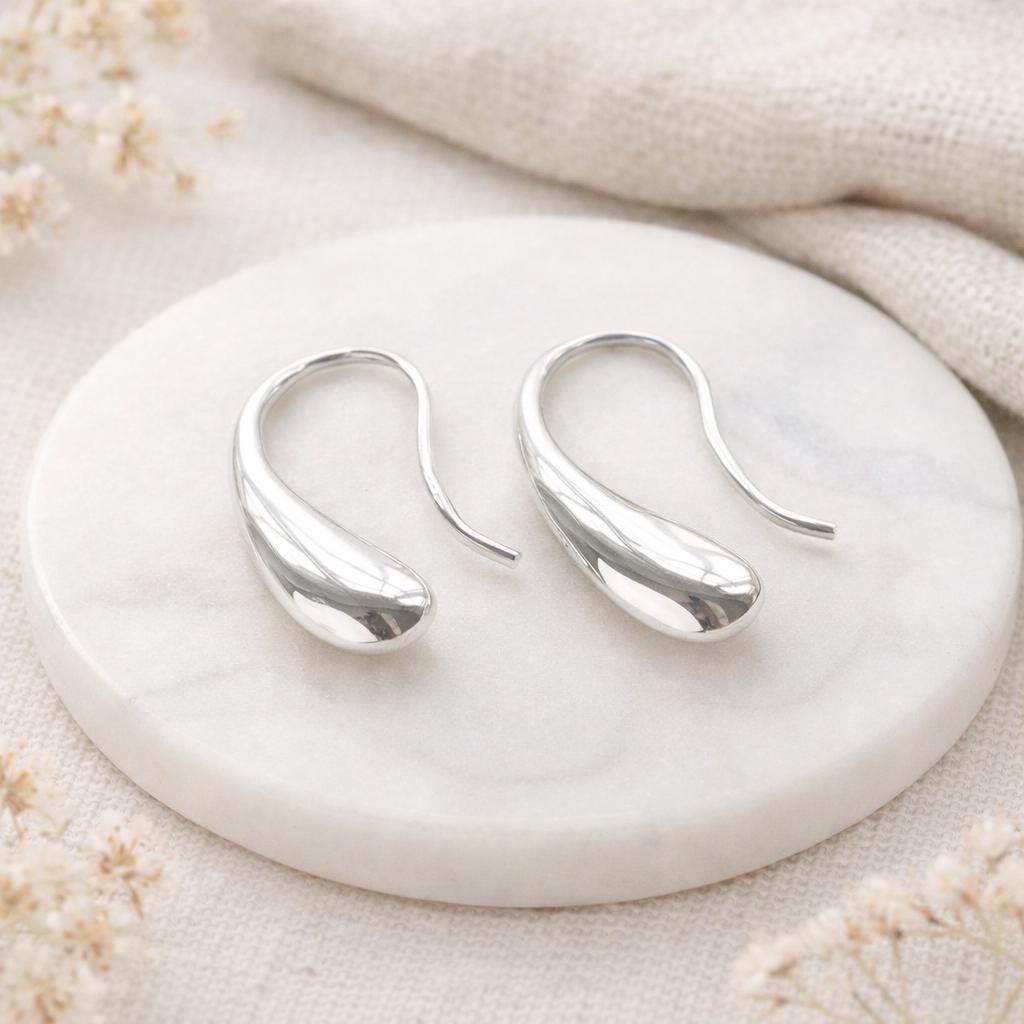 Each earring is carefully formed to create a gentle curve that follows the line of the ear, offering a contemporary look that feels light and effortless. The elongated 25mm drop adds subtle movement, while the clean hook design keeps the overall style modern and unfussy. Lightweight and comfortable, they are ideal for everyday wear or for those who prefer jewellery with a refined, understated feel.