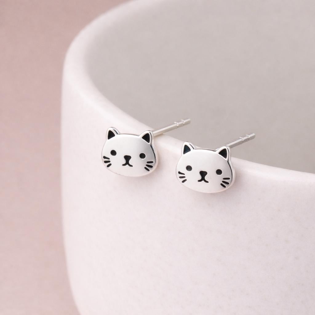 These cat stud earrings are handcrafted from solid 925 sterling silver and finished with delicate oxidised details to highlight the character and expression of the design.