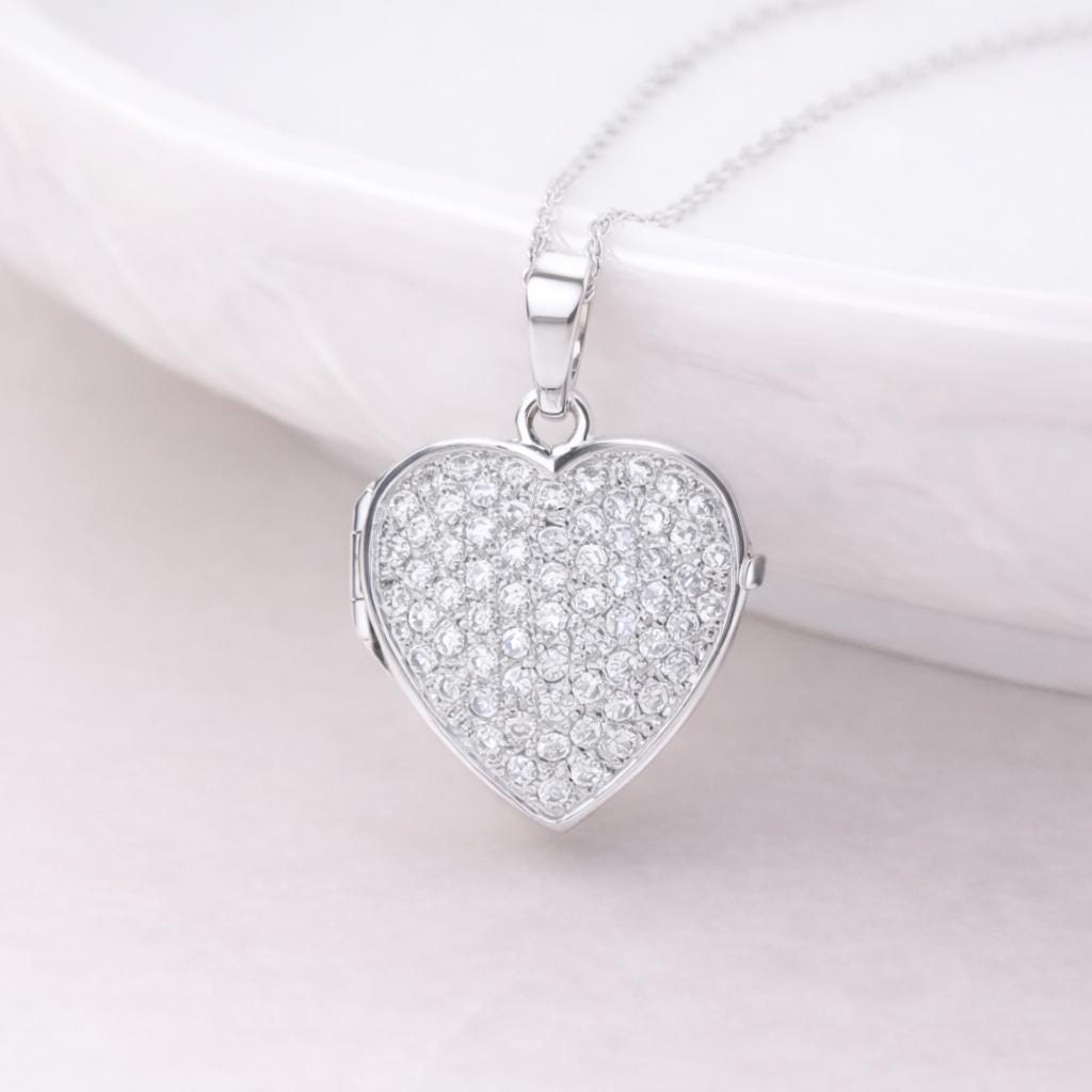 Radiating timeless elegance, our Sparkling Heart Locket is a romantic piece crafted from the finest hypoallergenic sterling silver and scattered with dazzling cubic zirconia gemstones. Hidden inside are two photo slots to hold precious memories, along with space on the back for a meaningful engraved message.