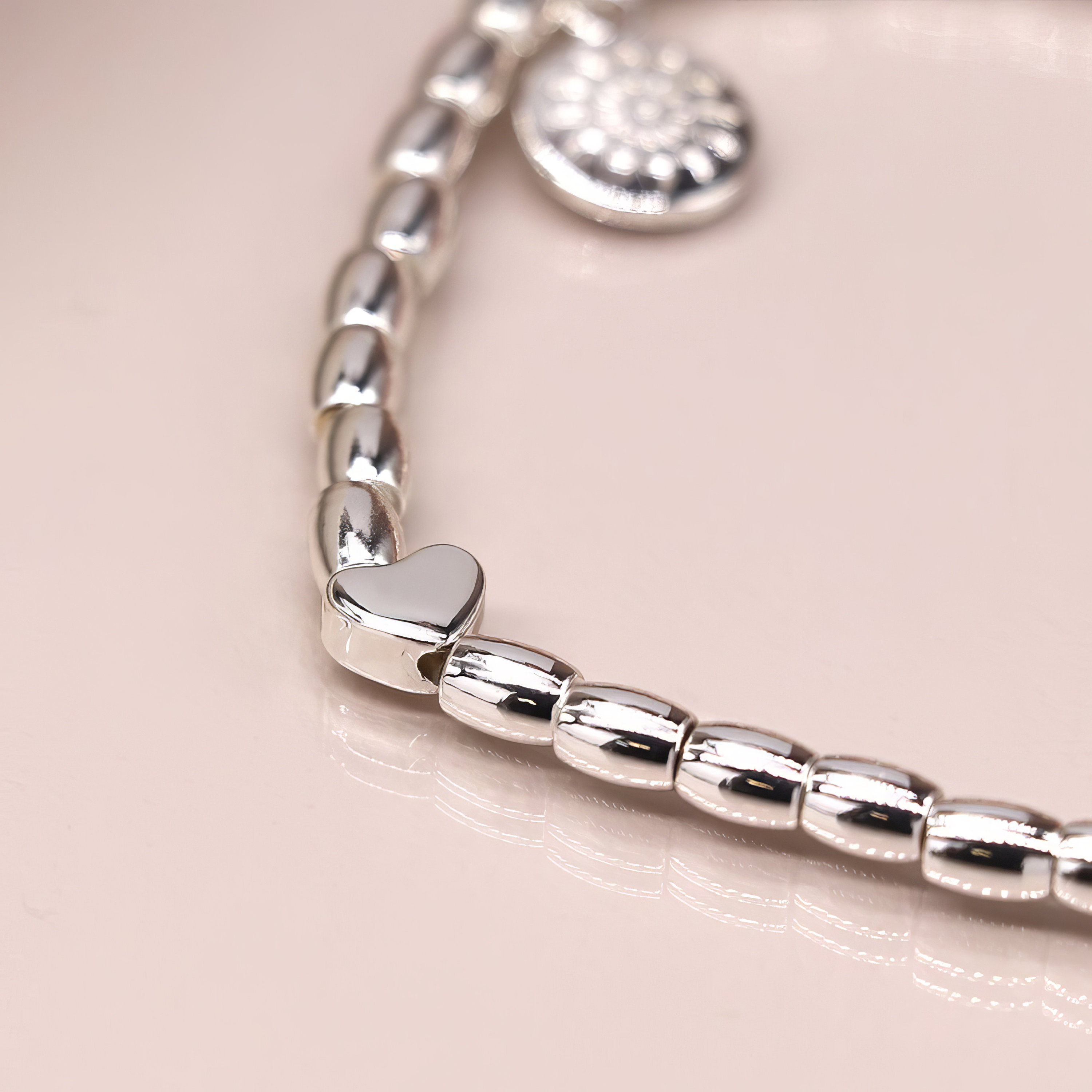 Perfect as a silver heart charm bracelet, stretchy beaded bracelet, romantic everyday bracelet, or thoughtful gift for her, this design makes a lovely choice for birthdays, anniversaries, bridesmaid gifts, or simply as a meaningful token.