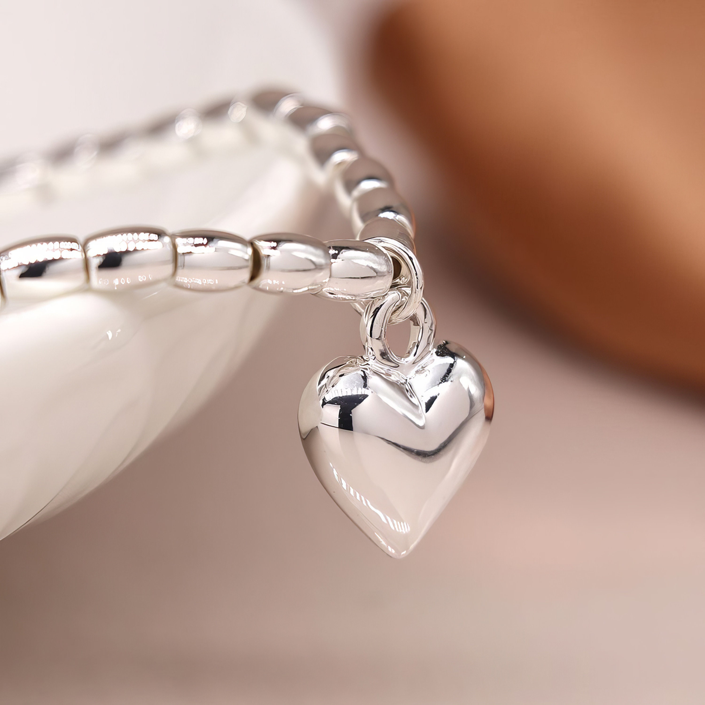 ♡ Style Tip: Stack this bracelet with other slim silver bangles or bead bracelets for a layered look, or wear it solo with a soft knit or casual shirt sleeve slightly rolled up to let the puff heart charm shine.