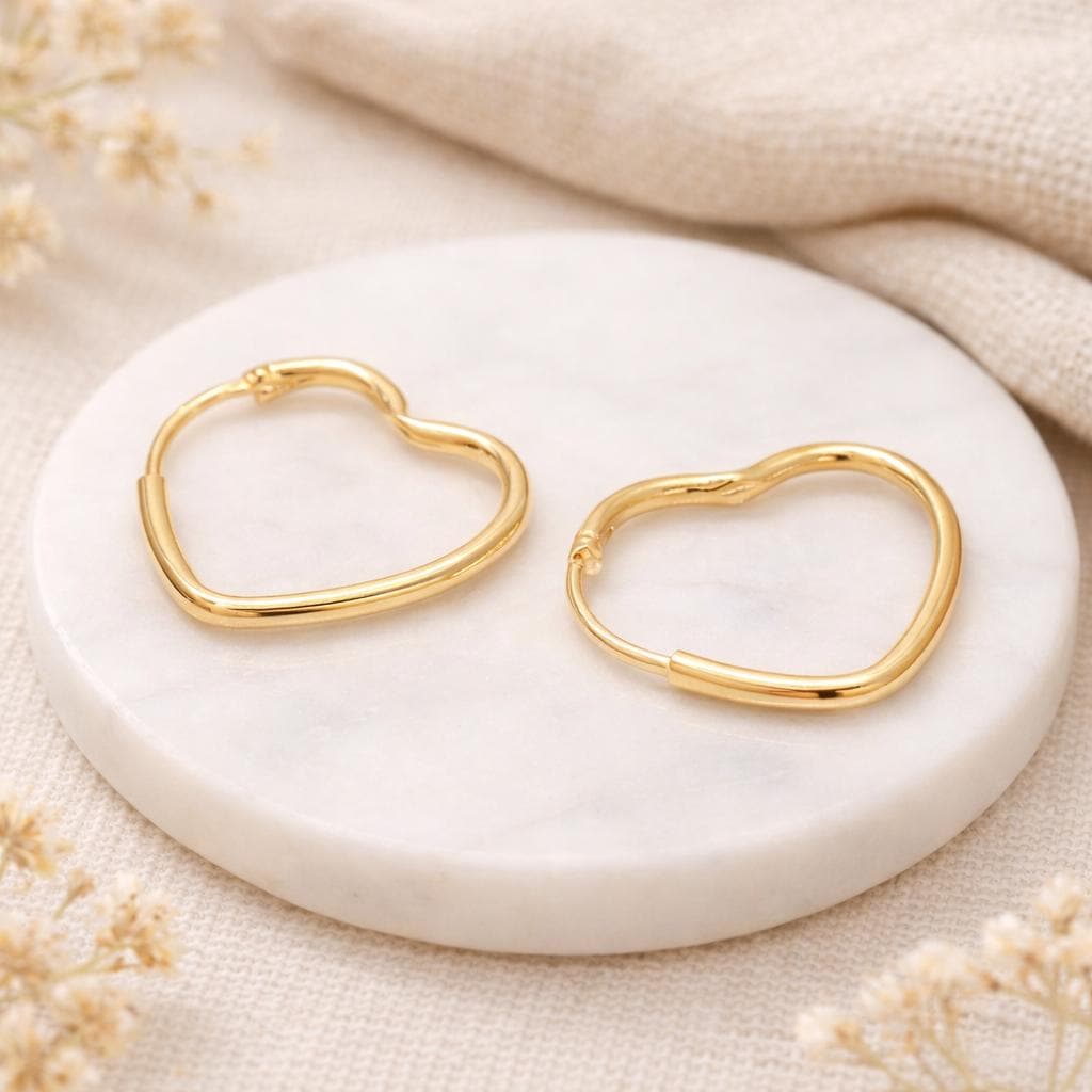 ♡ Style Tip: These heart hoops pair beautifully with warm neutrals, soft knits, or flowing dresses, perfect for adding a gentle golden glow to everyday outfits.