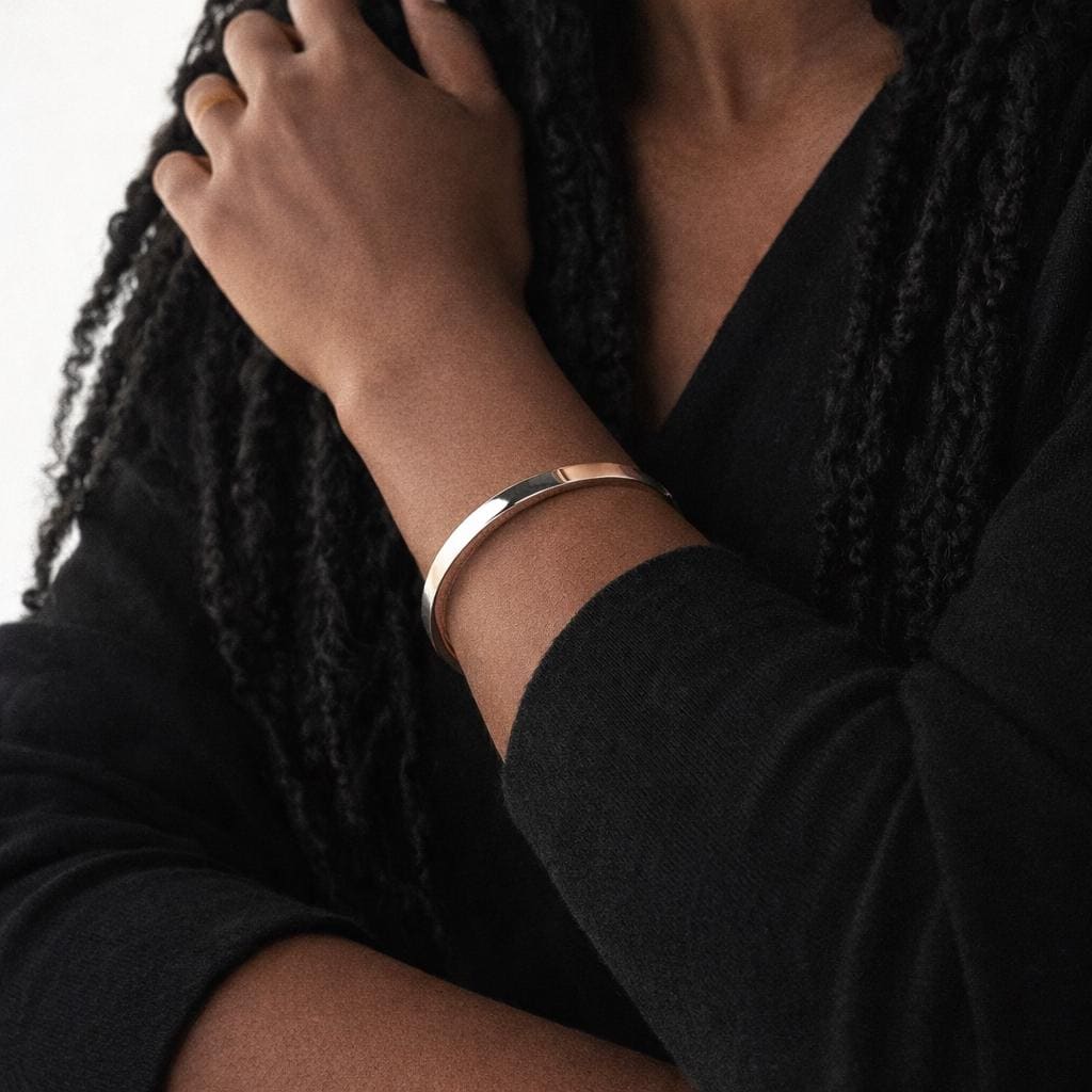 ♡ Style Tip: This square cut bangle looks striking worn alone for a clean, architectural look, or paired with slimmer bangles for a modern stacked style. It works beautifully with both casual outfits and tailored pieces.
