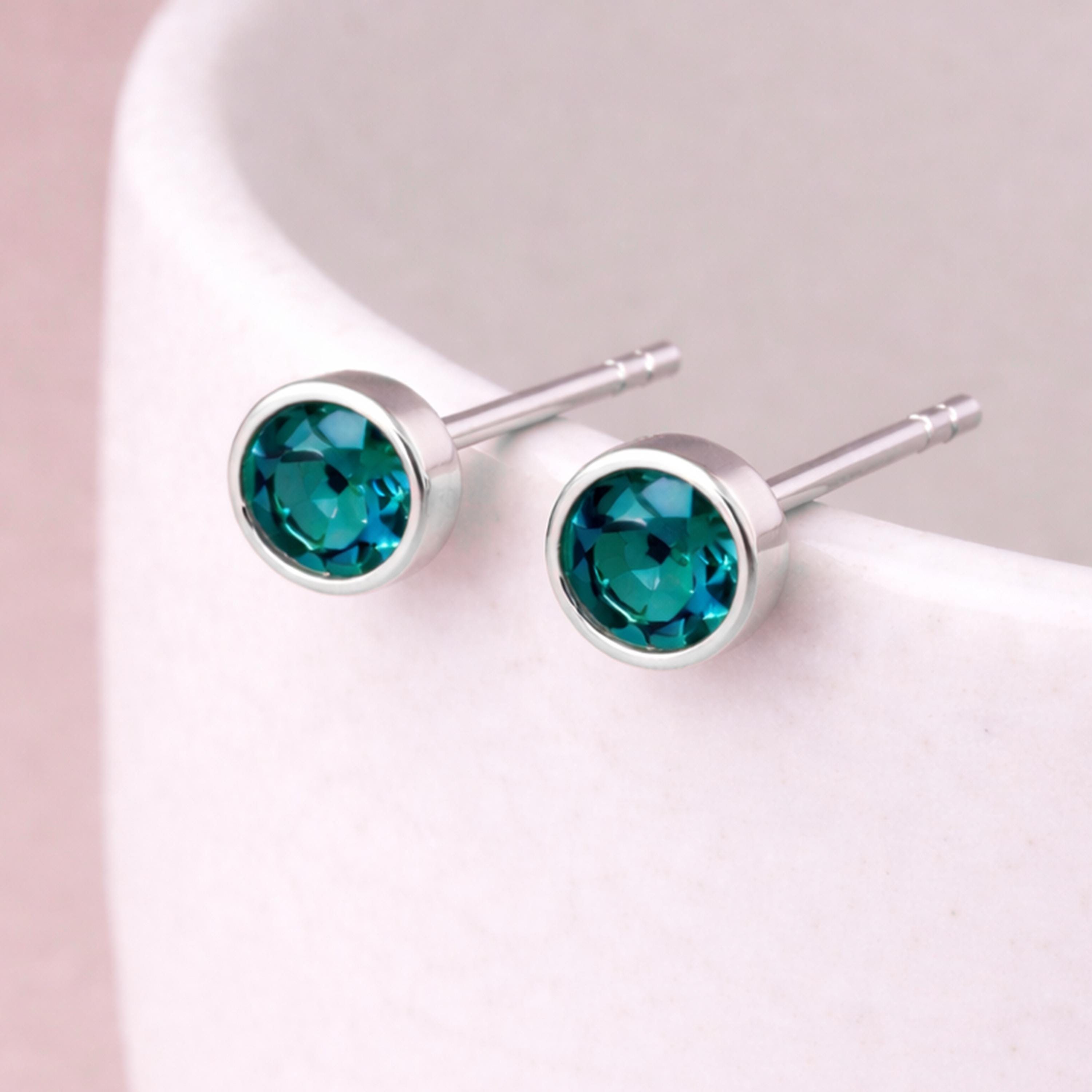These blue topaz coloured stud earrings are handcrafted from solid 925 sterling silver and set with a vibrant blue topaz coloured cubic zirconia, finished in a smooth bezel setting for a clean, modern look. Nickel-free and hypoallergenic, they are gentle on sensitive ears and comfortable for everyday wear.