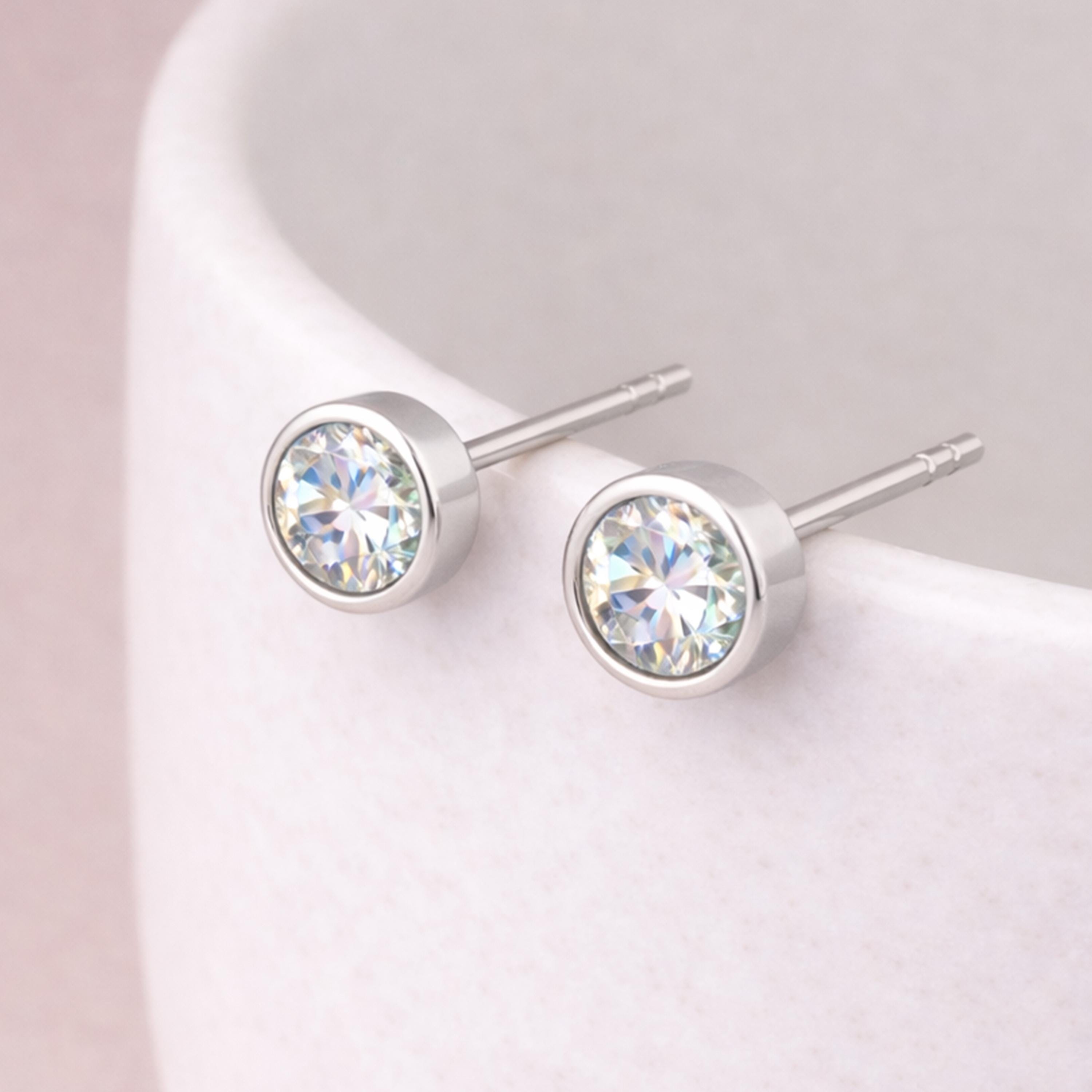 Each pair is carefully made in our UK studio, with the stone securely bezel set to maximise light reflection while remaining smooth and comfortable for everyday wear. Diamond is the birthstone for April and symbolises strength, clarity, love, and new beginnings, making these earrings a thoughtful birthday gift or a meaningful everyday piece.