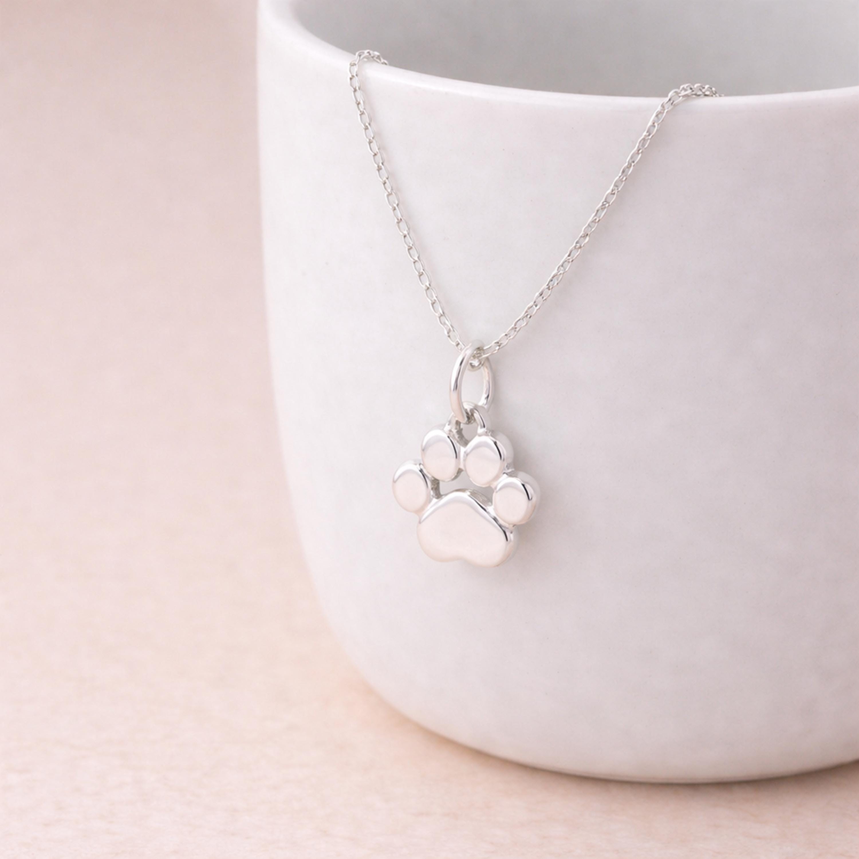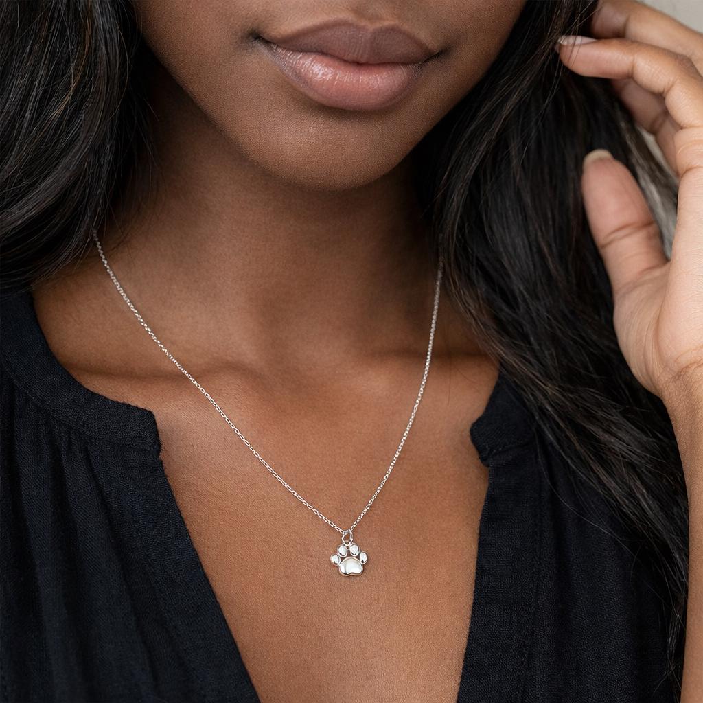 Perfect as a sterling silver paw print necklace, pet memorial necklace, dog lover jewellery piece, or personalised gift for animal lovers, this design combines sentiment with simple elegance.