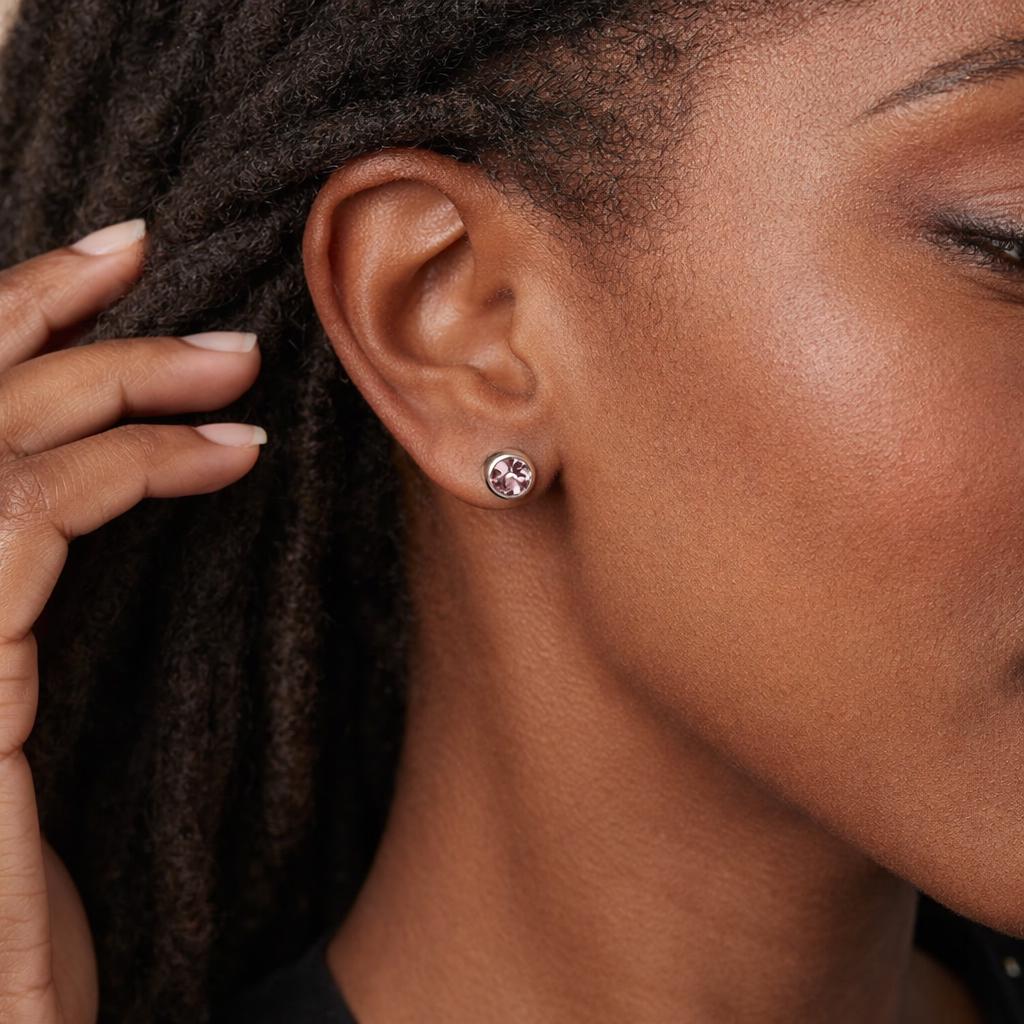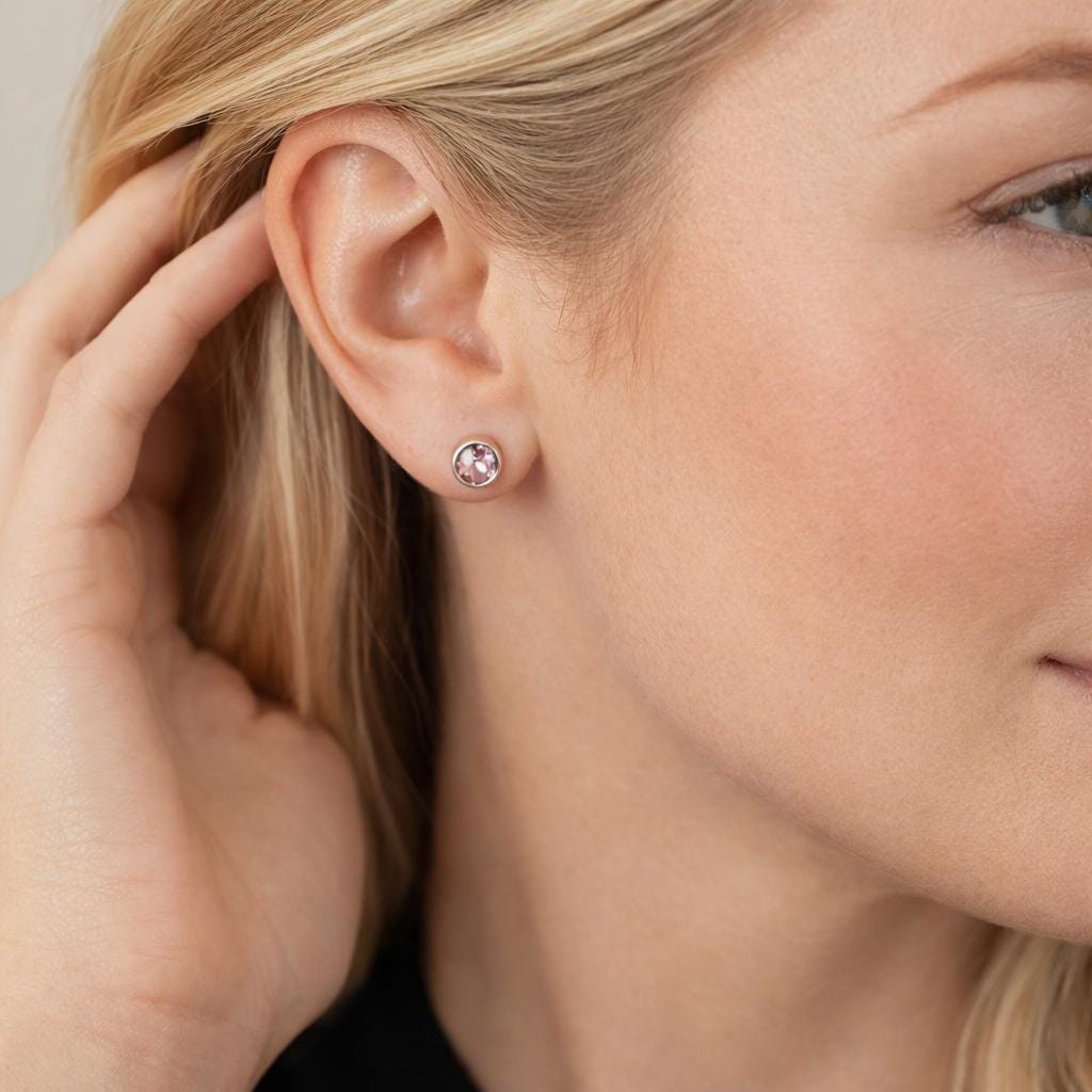 Each pair is made by hand in our UK studio, with the stone chosen for its subtle lilac sparkle and elegant finish. Alexandrite is an alternative birthstone for June and represents balance, intuition, and personal growth. This stone is non colour changing, displaying a consistent lilac hue ideal for everyday wear.