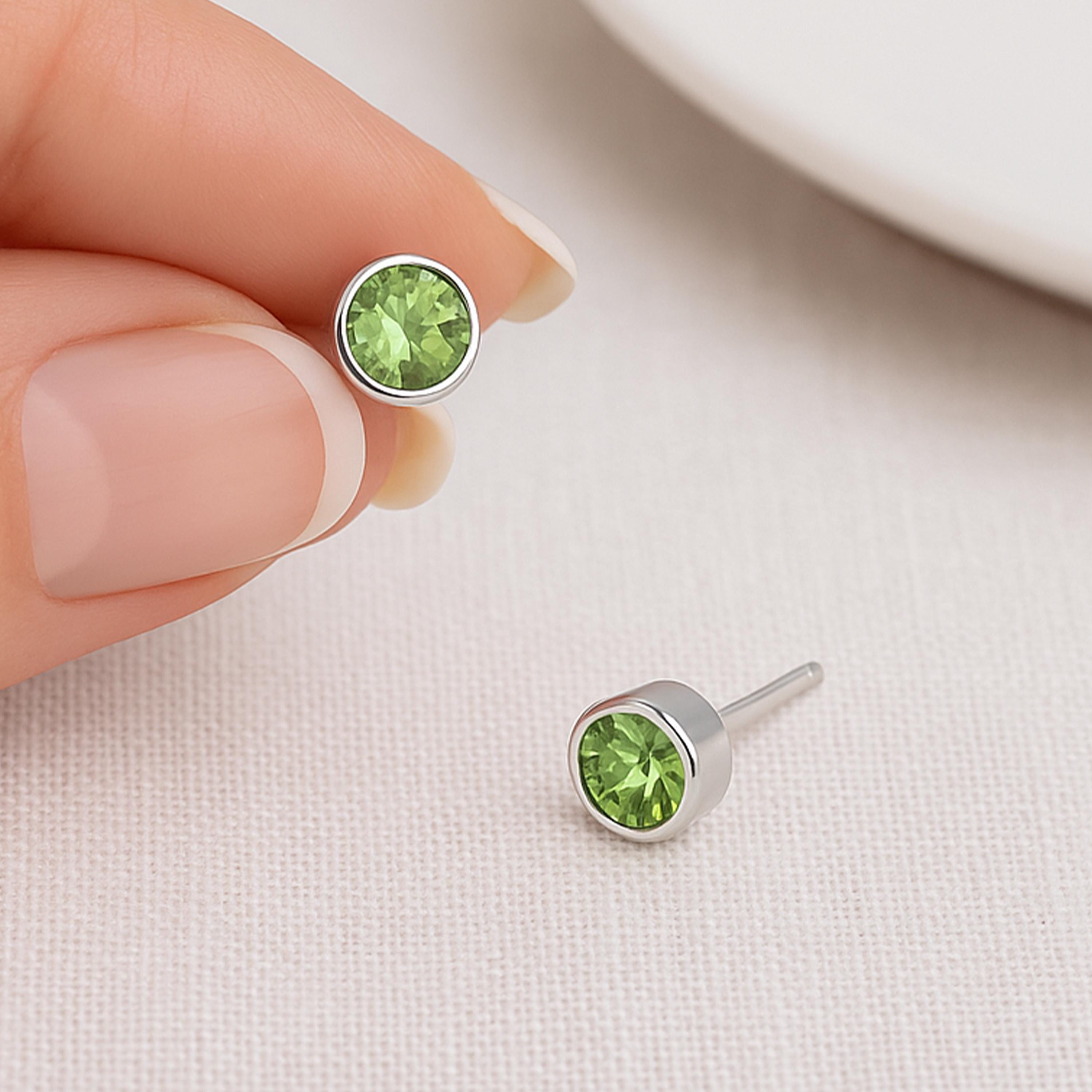 Sterling silver studs with fresh green peridot-inspired cubic zirconia — a vibrant design celebrating the August birthstone.
