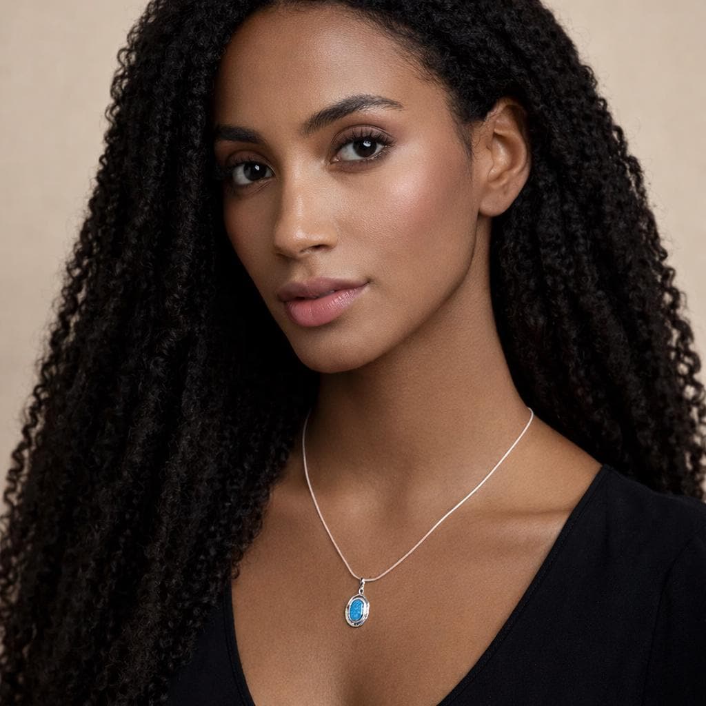 ♡ Style Tip: Wear this pendant over a simple neutral blouse to let the blue opal stand out, or layer it with a fine silver chain for a soft, contemporary stacked look.