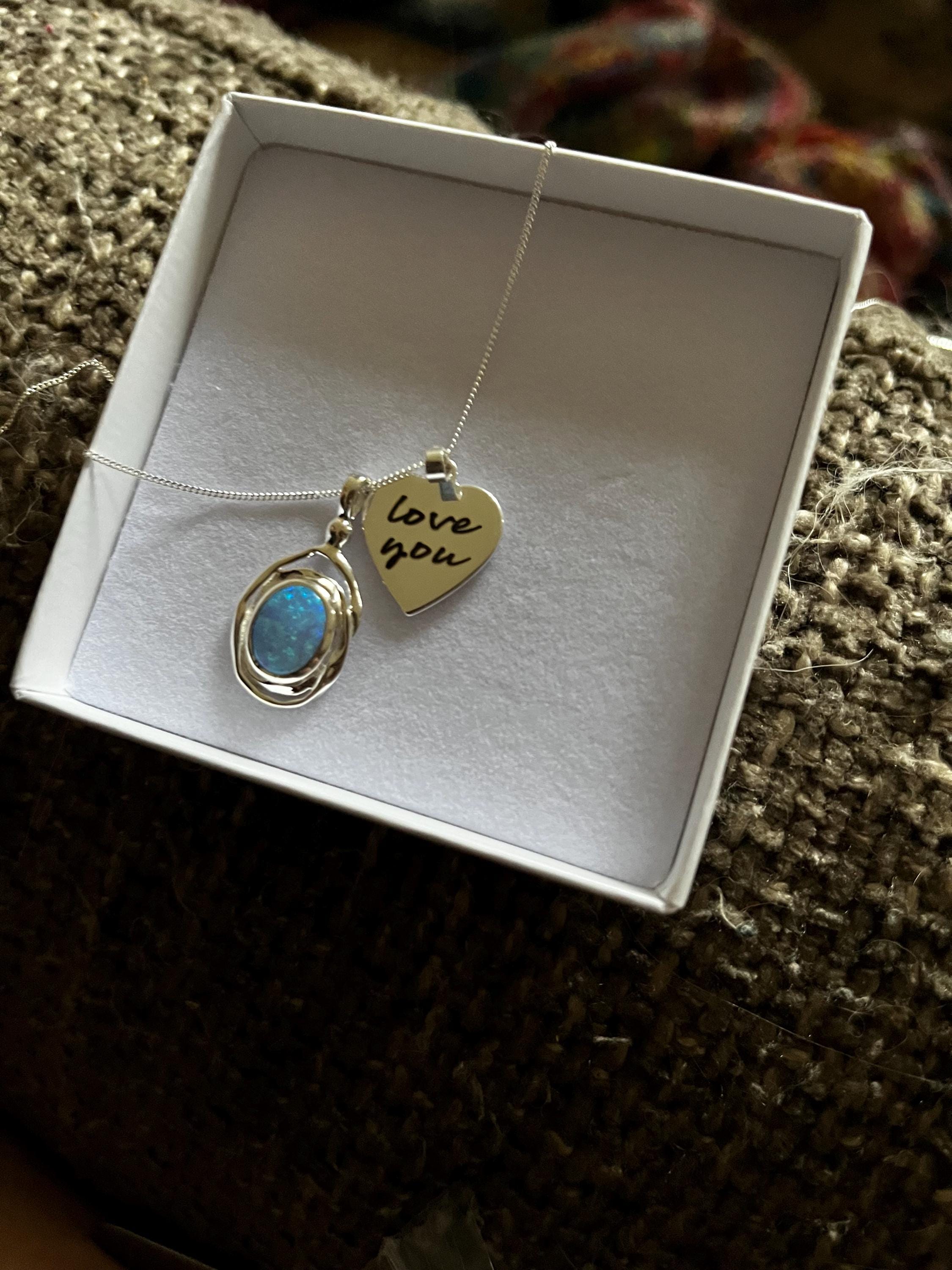 A stunning molten silver opal necklace that is perfect for all ages. Symbolising hope and love, this modern unique pendant makes a memorable gift.