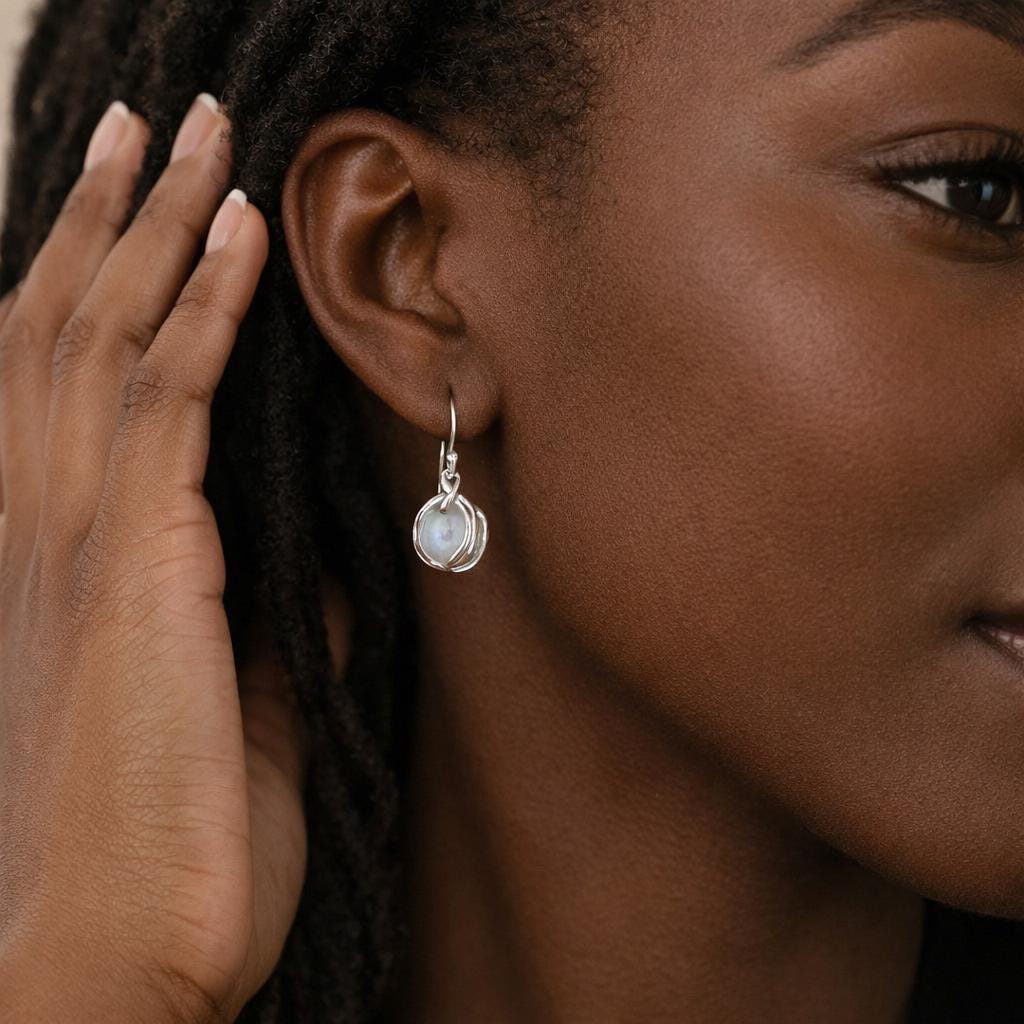 ♡ Style Tip: Pair these moonstone earrings with soft neutral tones or flowing fabrics to highlight their natural glow, or wear them with a simple silver necklace for a refined look that lets the gemstone take centre stage.
