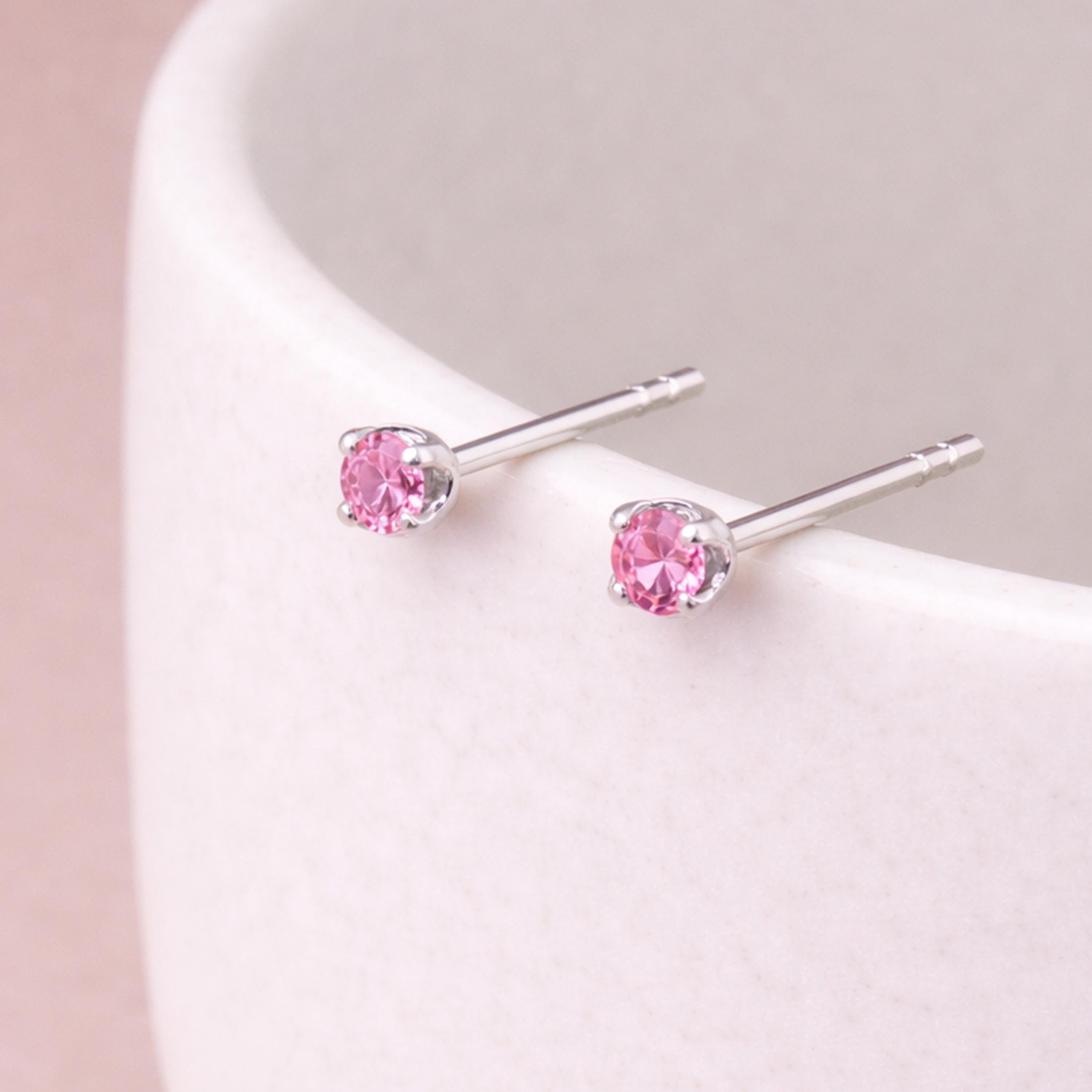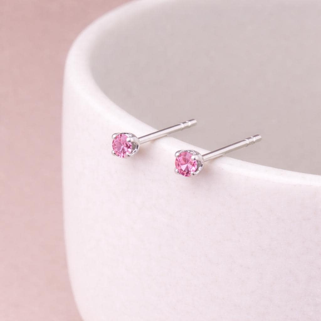 These pink tourmaline coloured stud earrings are crafted from solid 925 sterling silver and set with a sparkling pink cubic zirconia, designed to echo the soft blush tones of pink tourmaline in a delicate, everyday style. Nickel-free and hypoallergenic, they are gentle on sensitive ears and comfortable to wear all day.
