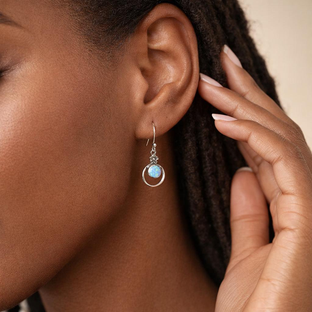 ♡ Style Tip: Pair these earrings with a simple silver pendant or soft blue tones to highlight the opal’s colour, or wear with loose hair or an updo so the molten silver detail and gemstone can catch the light beautifully.