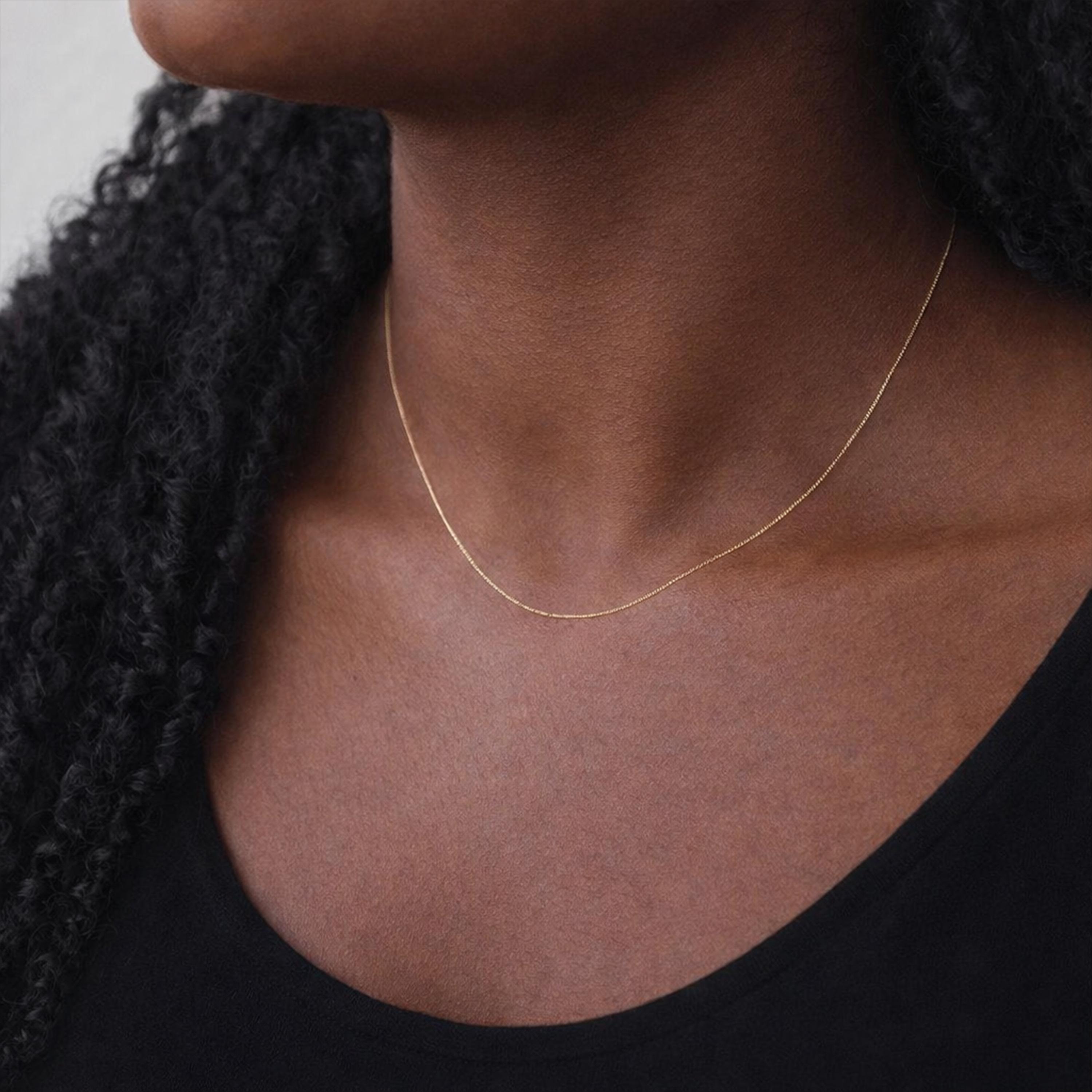♡ Style Tip: This ultra fine curb chain is perfect for showcasing tiny pendants or wearing alone for a soft, elegant finish. It also works beautifully layered with slightly thicker gold chains for a modern, delicate look.