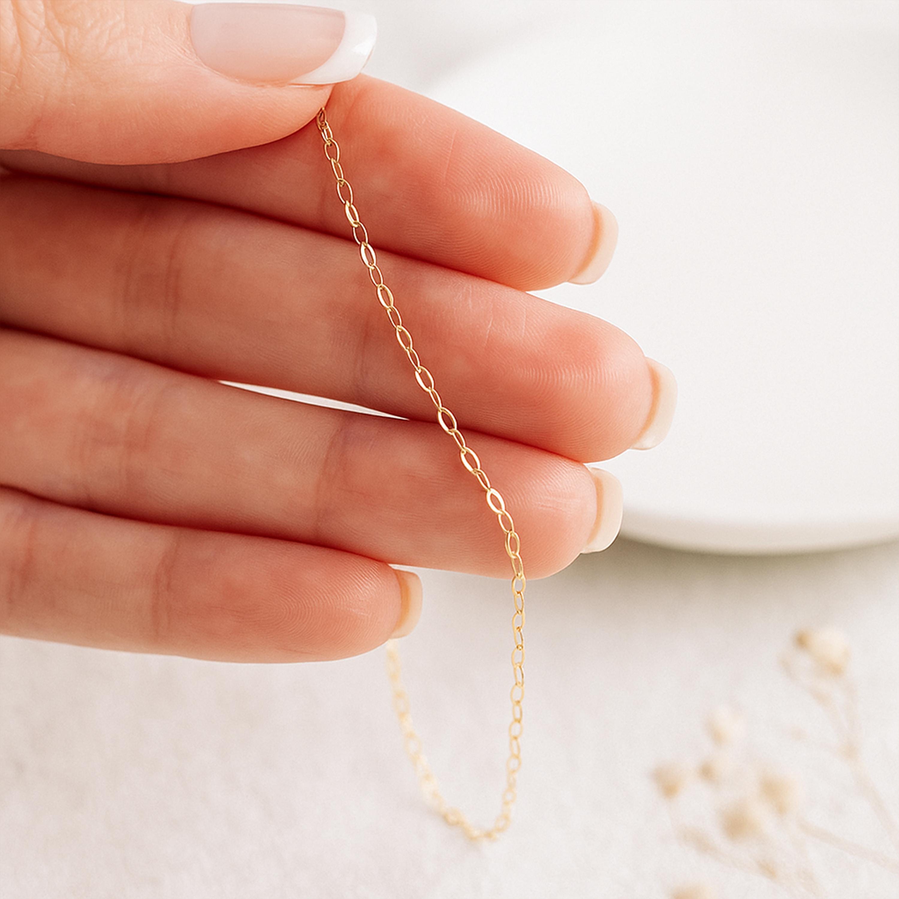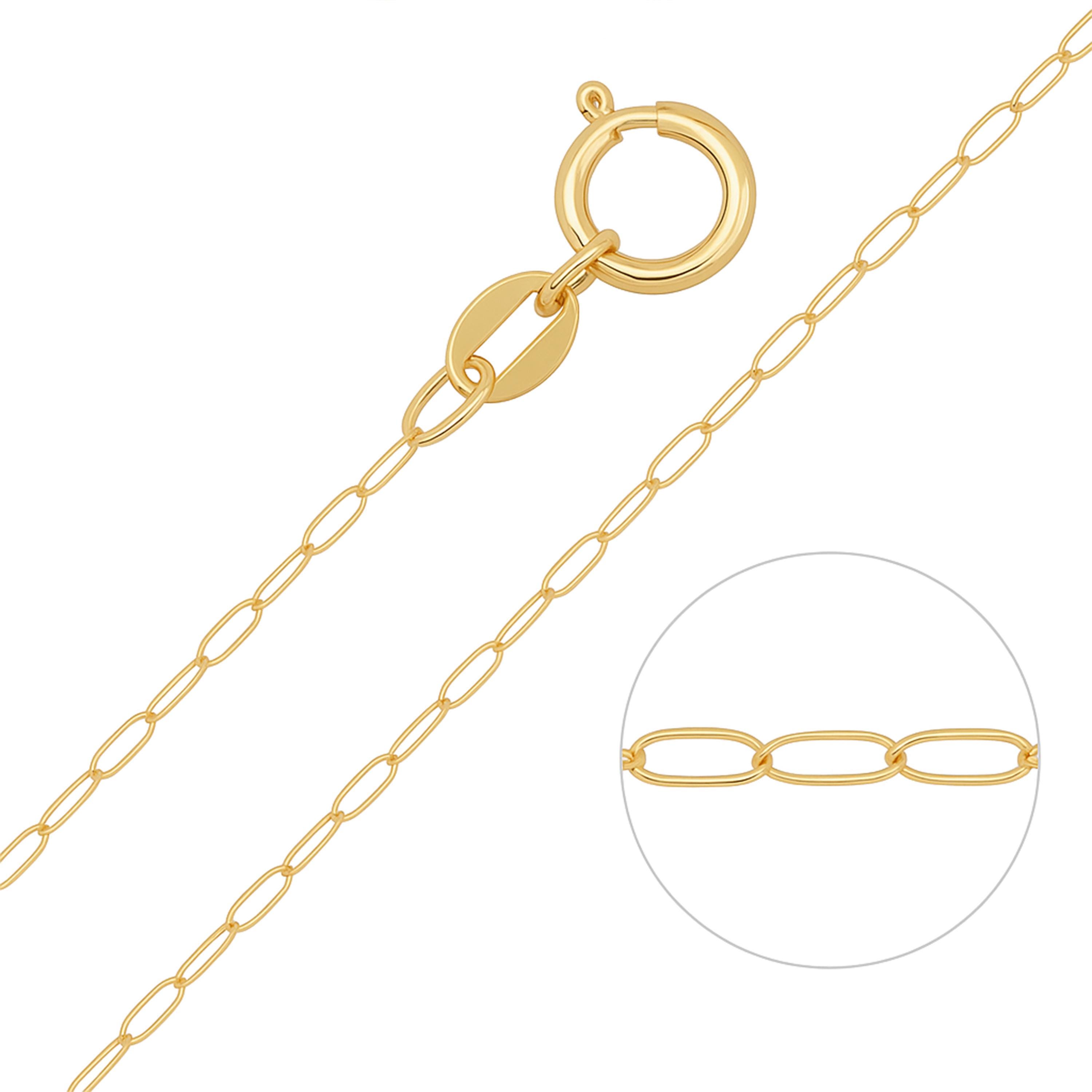 Crafted from solid 9ct yellow gold, the chain has polished oval links that catch the light beautifully. At 1.2mm wide, it’s delicate yet durable, finished with a secure bolt ring clasp. Available in lengths from 16in to 20in, this chain is ideal for pairing with lockets, charms, or pendants, or worn alone for a classic, minimalist look.