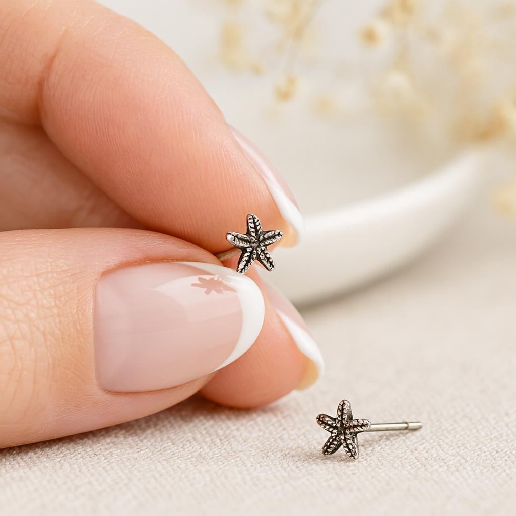 A tiny tribute to the sea — these beautifully detailed sterling silver starfish studs are full of texture, charm, and coastal character. Oxidised to highlight every line, they bring a touch of the ocean to your everyday style.