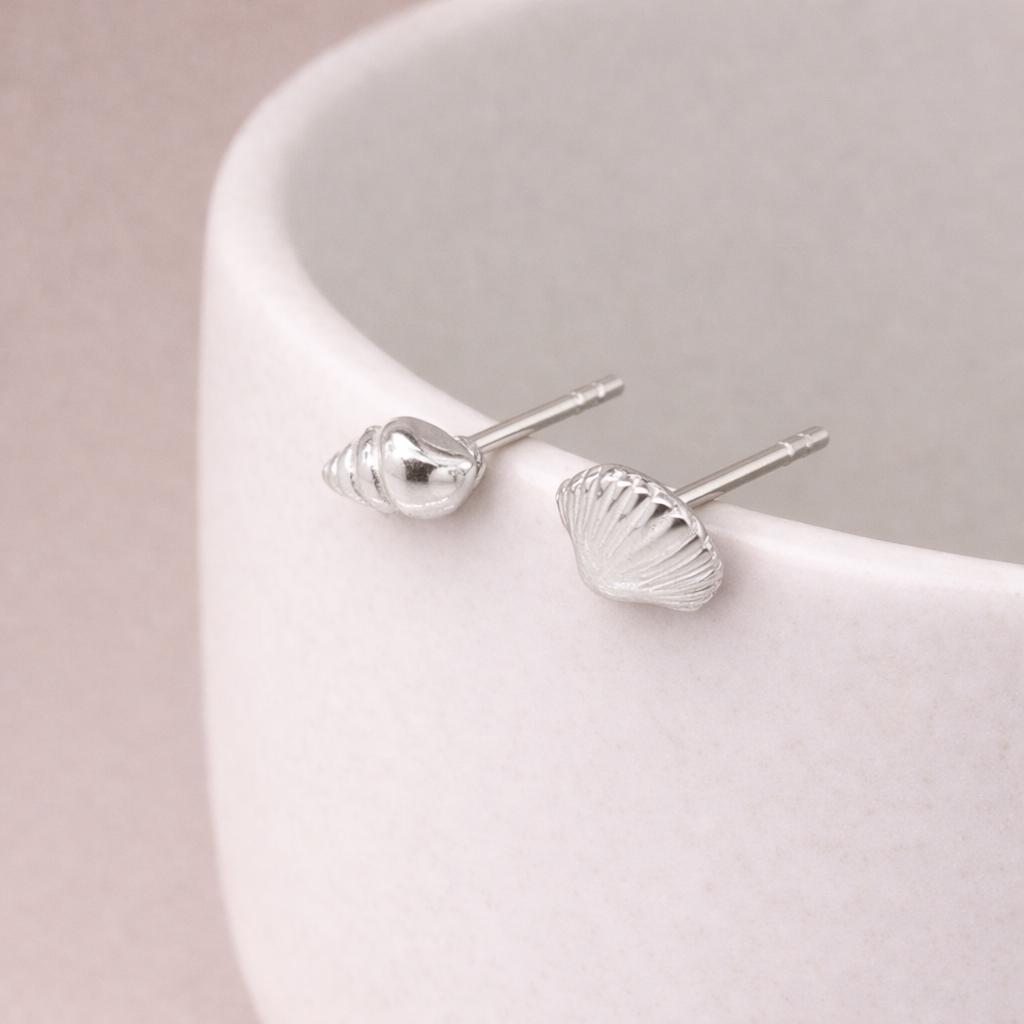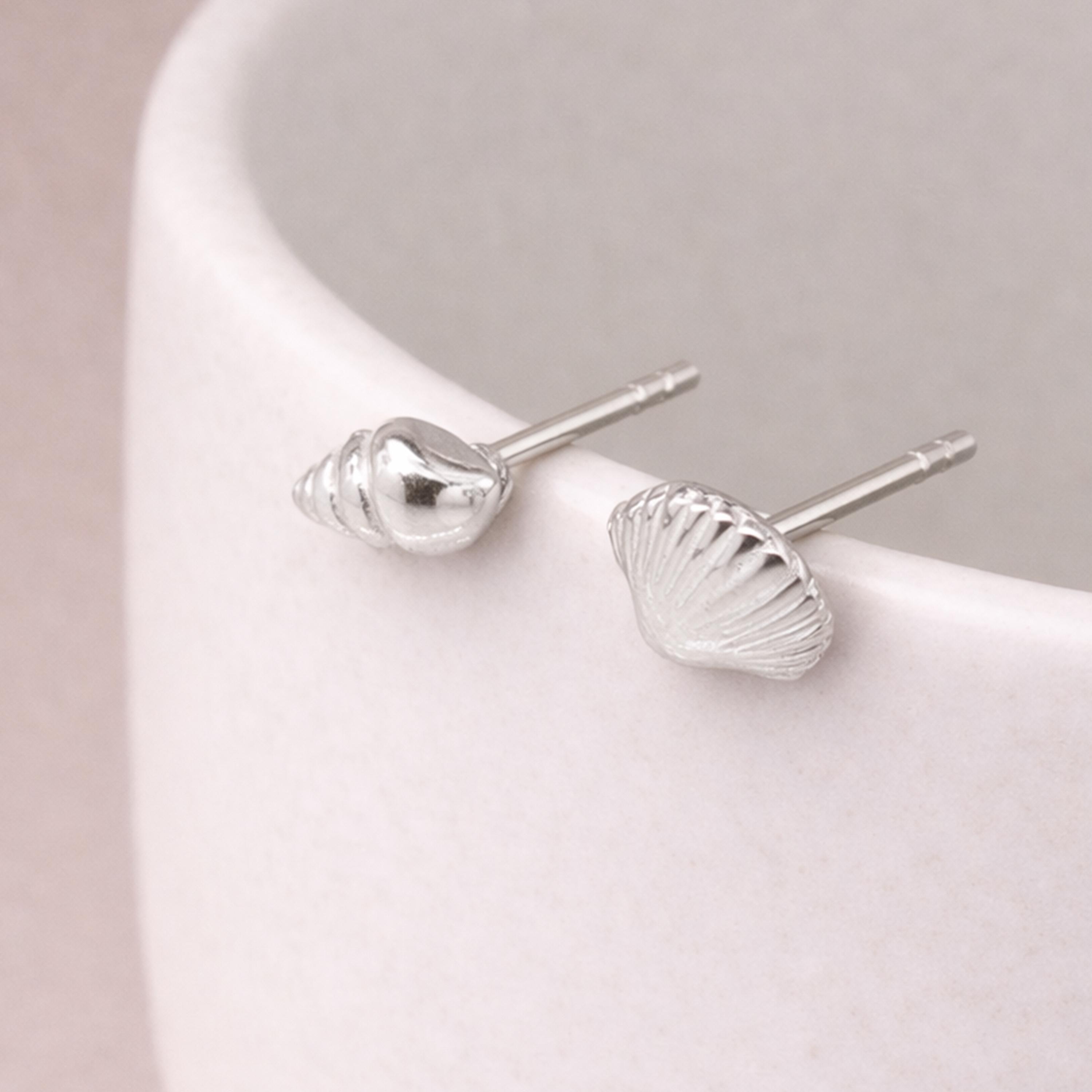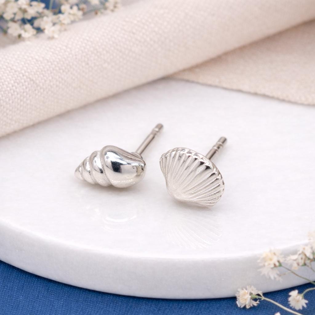 These sterling silver seashell stud earrings are handcrafted from solid 925 sterling silver and finished with softly sculpted shell detailing that catches the light beautifully.