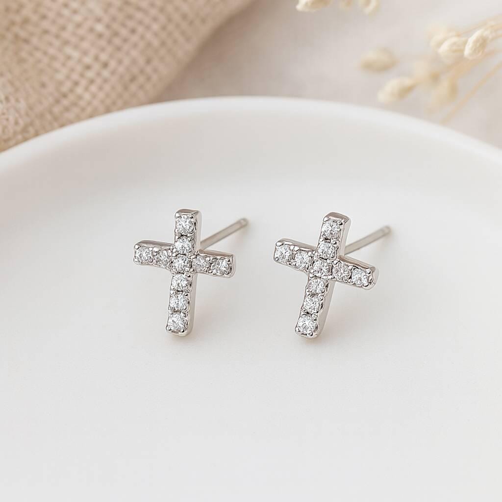 Classic and full of sparkle, these sterling silver cross studs are a timeless symbol of faith and style.