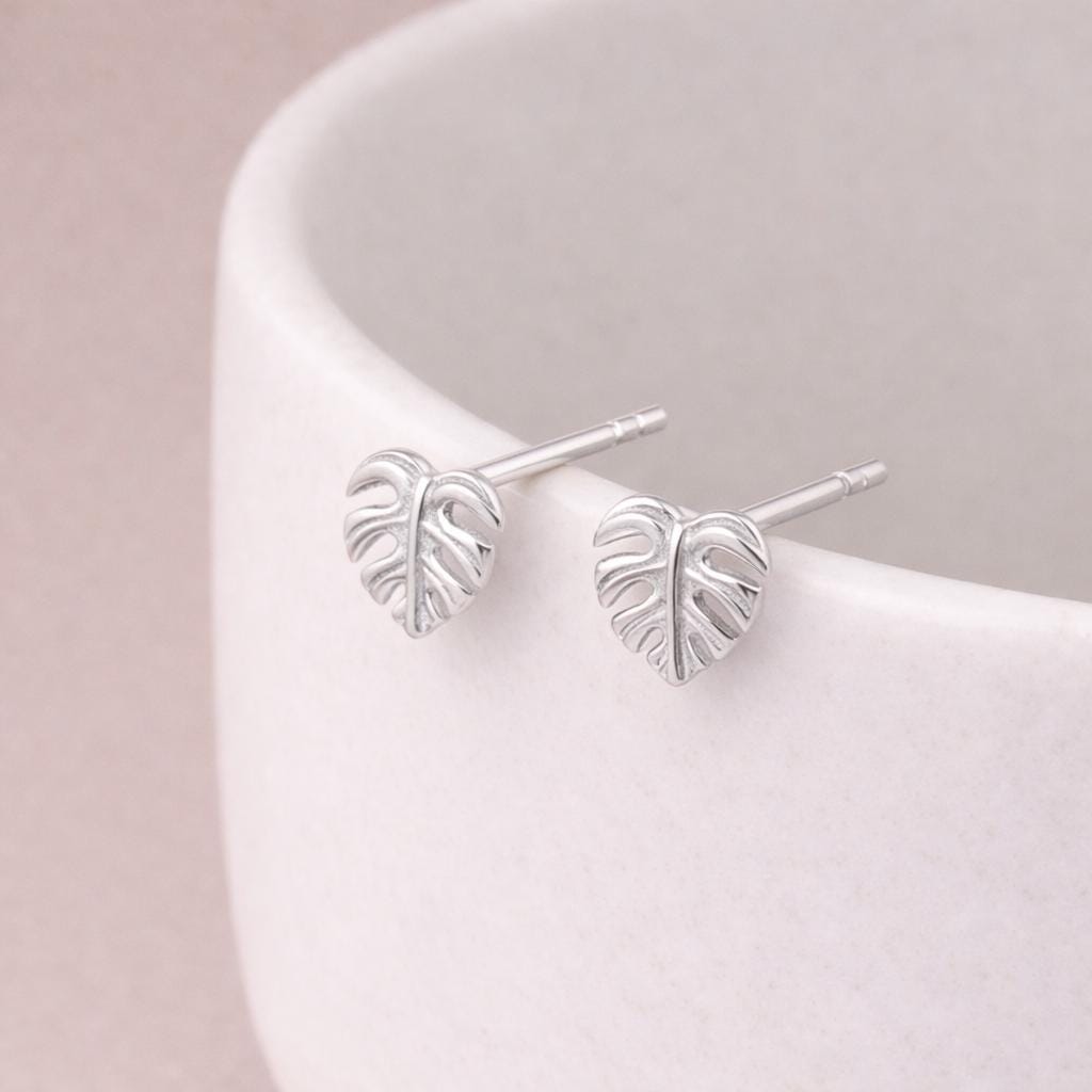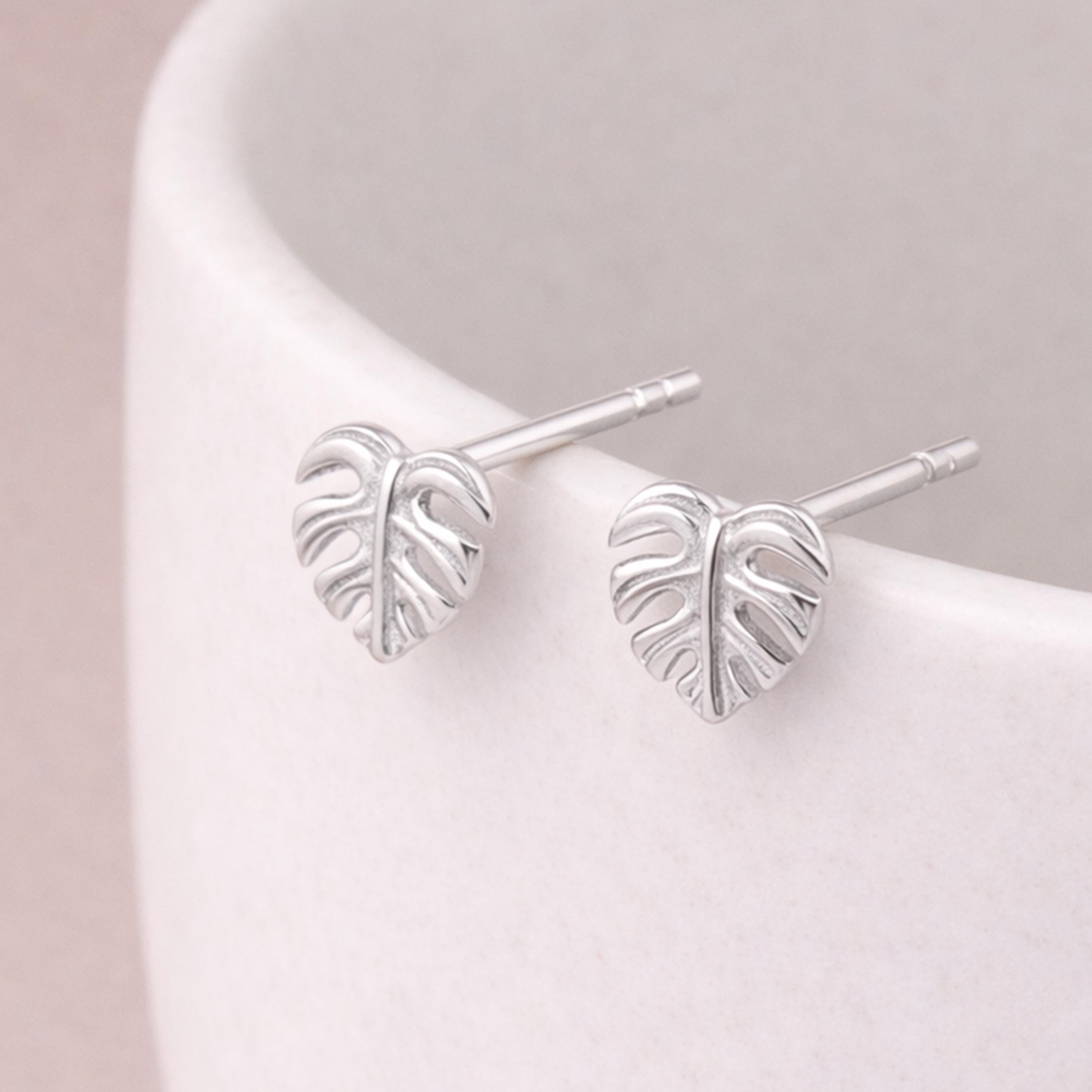 These monstera leaf stud earrings are handcrafted from solid 925 sterling silver, featuring a clean, polished leaf design inspired by tropical foliage.