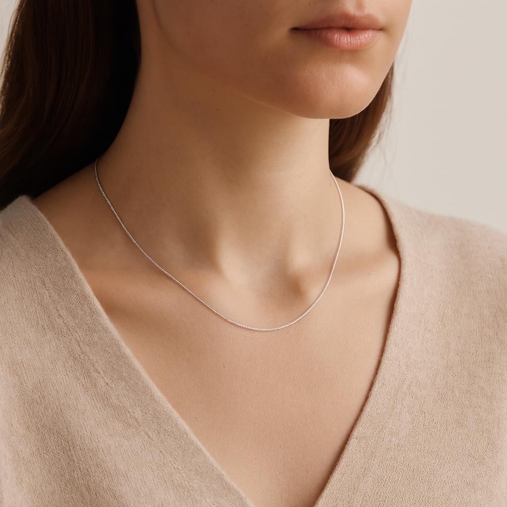 Handmade from solid 925 sterling silver, the chain is diamond-cut to create extra sparkle and shine. At 0.9mm wide, it’s sleek yet strong, finished with a secure bolt ring clasp. Available in lengths from 16in to 30in, this chain is a timeless choice that suits both casual and formal wear. Ideal for holding charms, lockets, and pendants, or simply worn alone for a minimalist look.