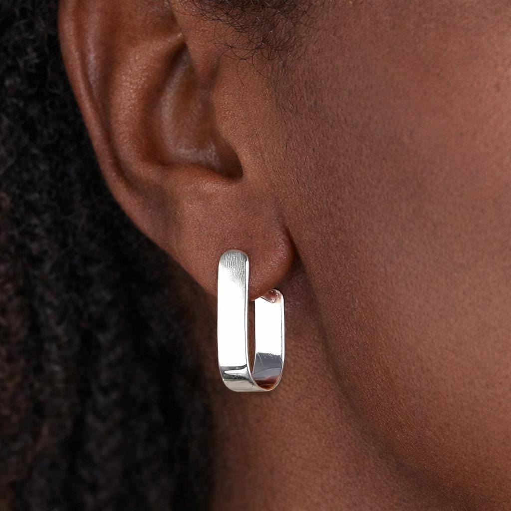 These sterling silver U shape hoop earrings are a modern, sculptural design, crafted from solid 925 sterling silver with a smooth, high shine finish that feels both bold and timeless.