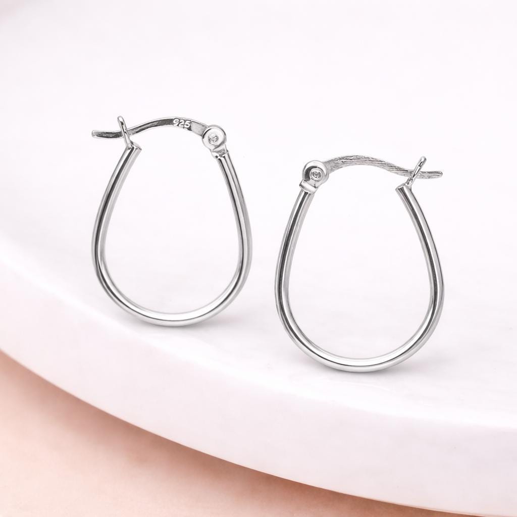 These oval hoop earrings are crafted from solid 925 sterling silver and finished in a bright polished silver tone. Designed in a softly tapered oval shape, they offer a refined alternative to classic round hoops while keeping a clean, minimalist look.