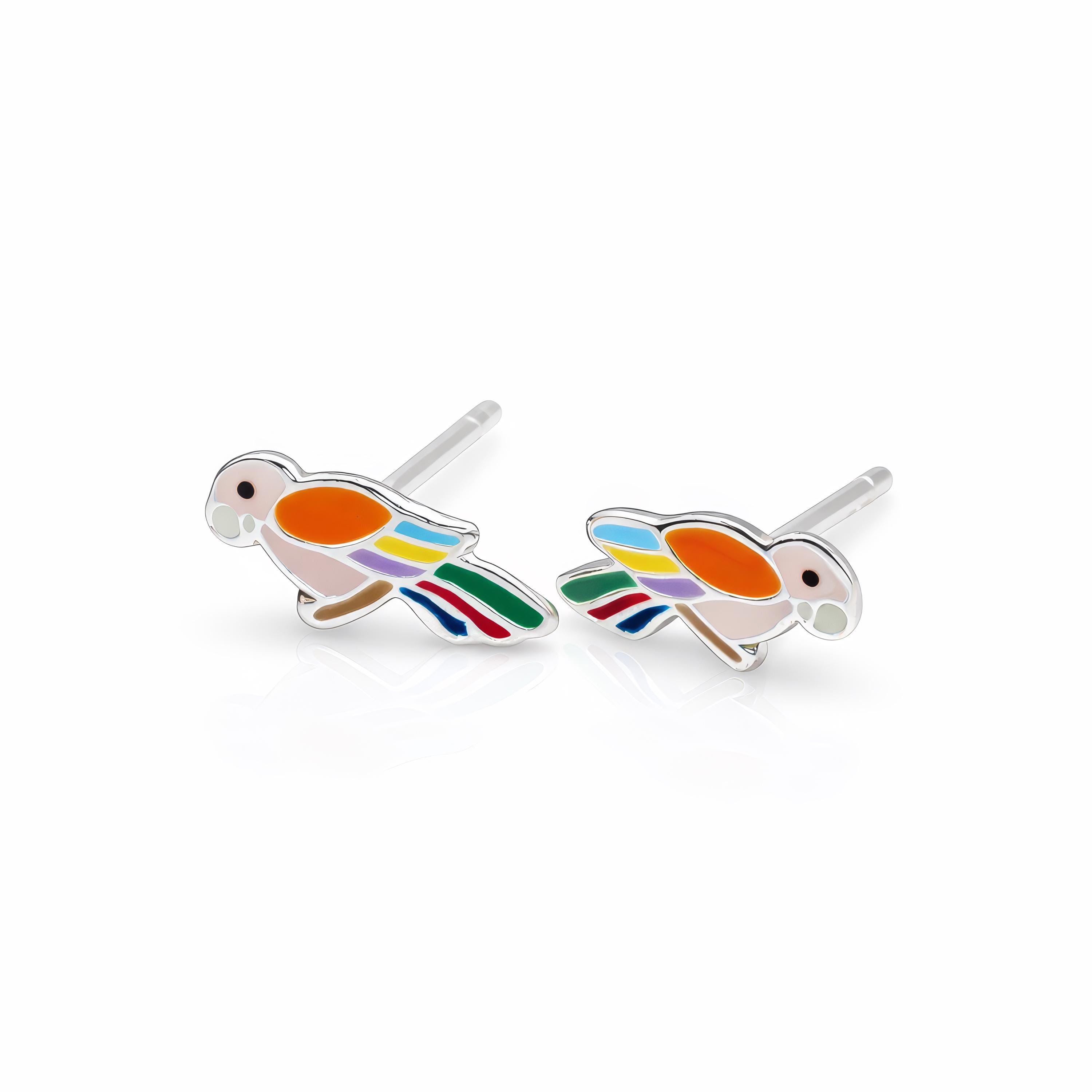 These parrot stud earrings are crafted from solid 925 sterling silver and finished with vibrant, hand-applied multicoloured enamel, creating a playful and eye-catching everyday design. Nickel-free and hypoallergenic, they are gentle on sensitive ears and comfortable to wear all day.