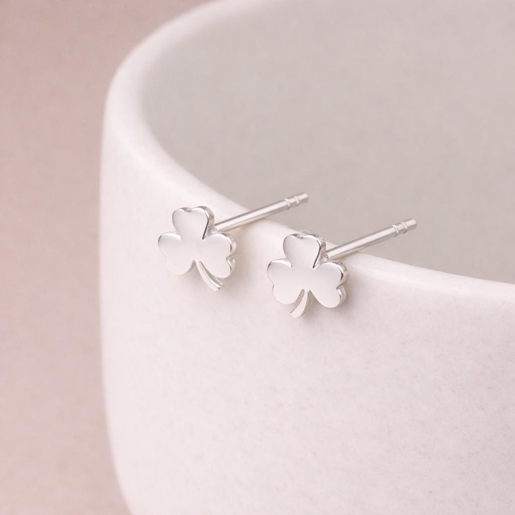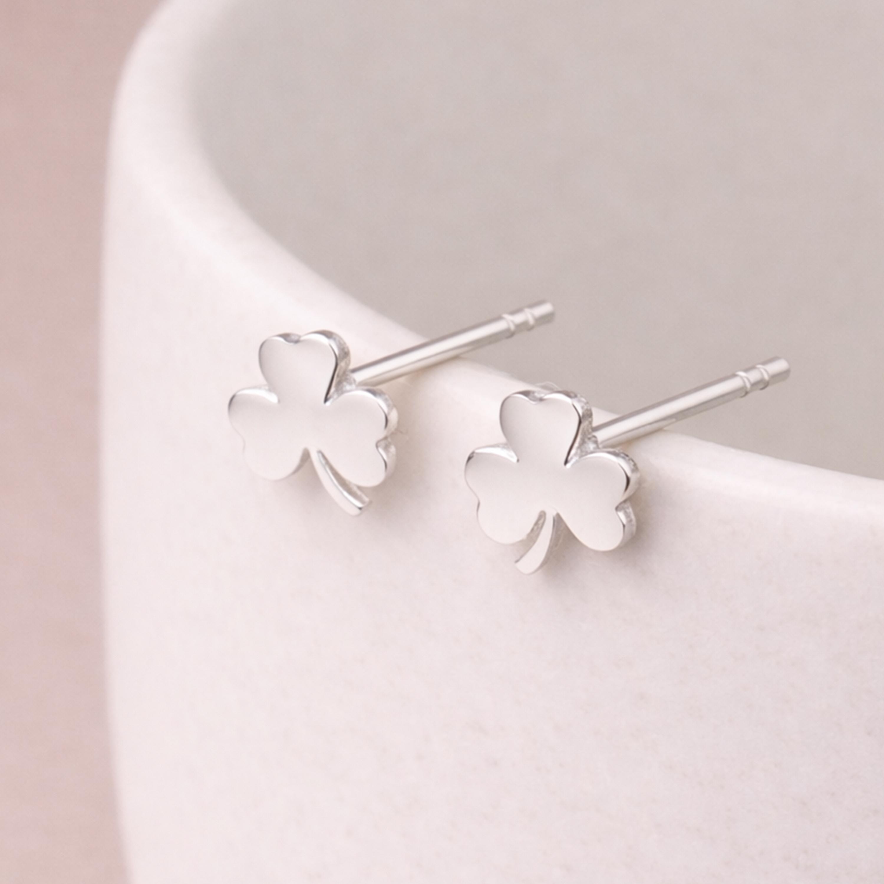 These sterling silver shamrock stud earrings are handcrafted from solid 925 sterling silver and finished with a smooth, polished surface for a timeless, understated look.