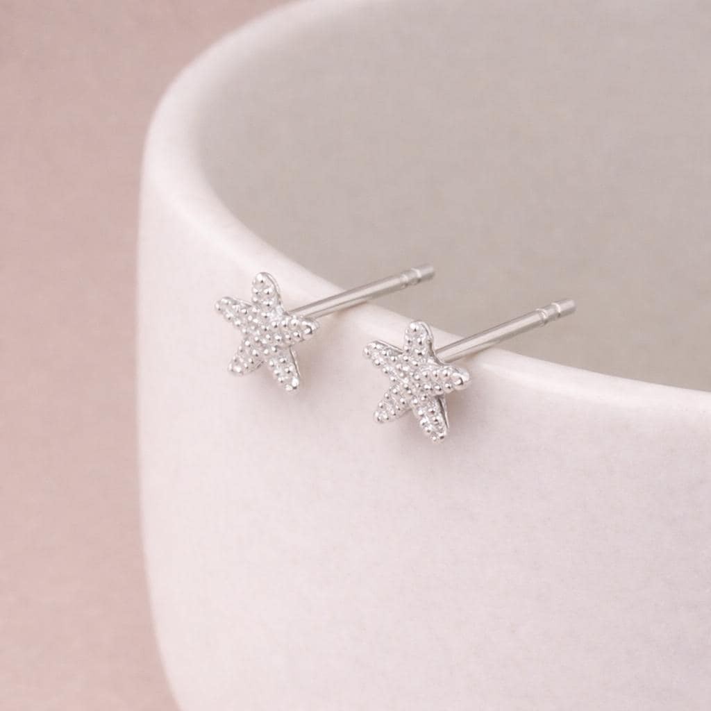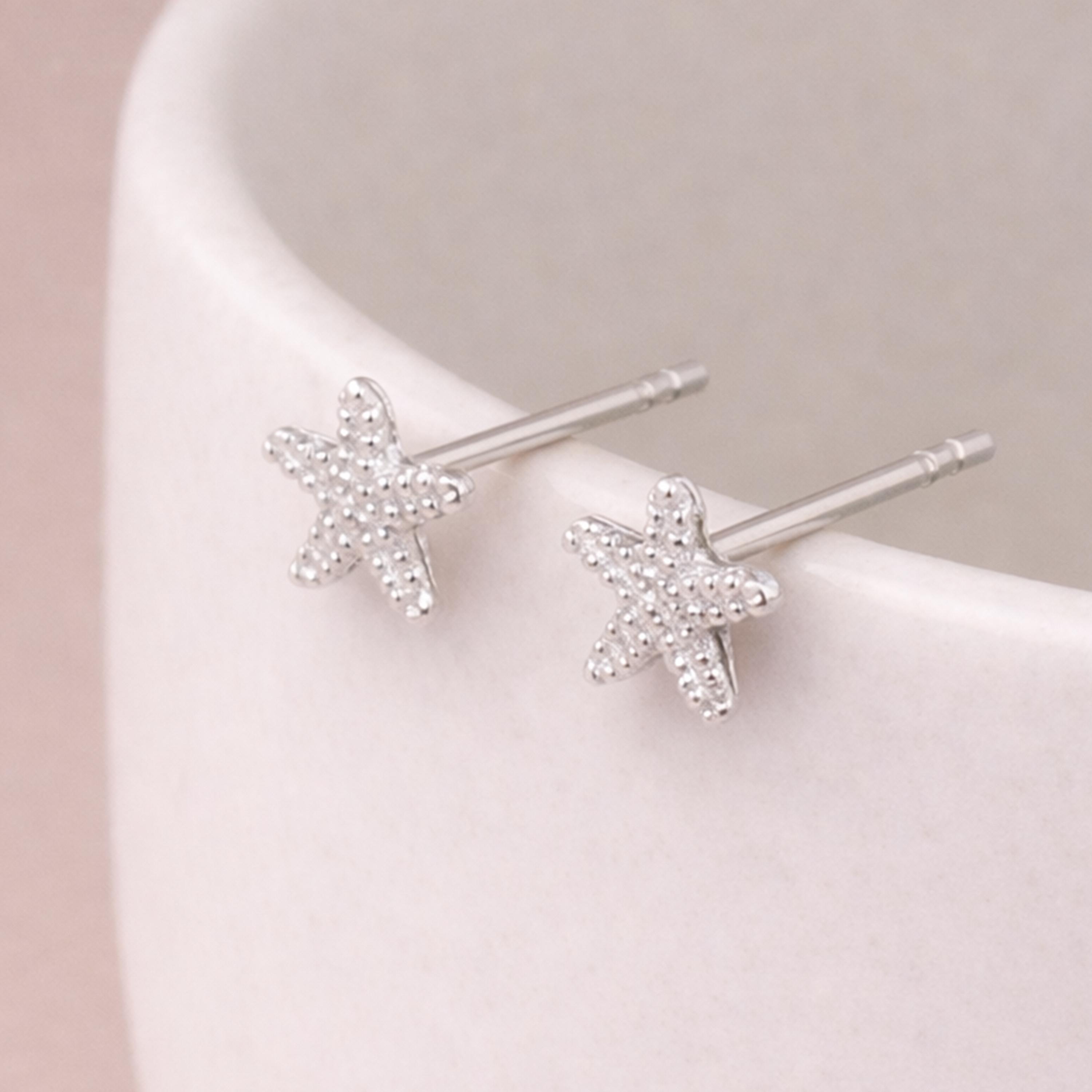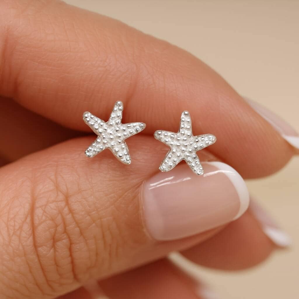 These sterling silver starfish stud earrings are handcrafted from solid 925 sterling silver and finished with a softly textured surface that catches the light beautifully.