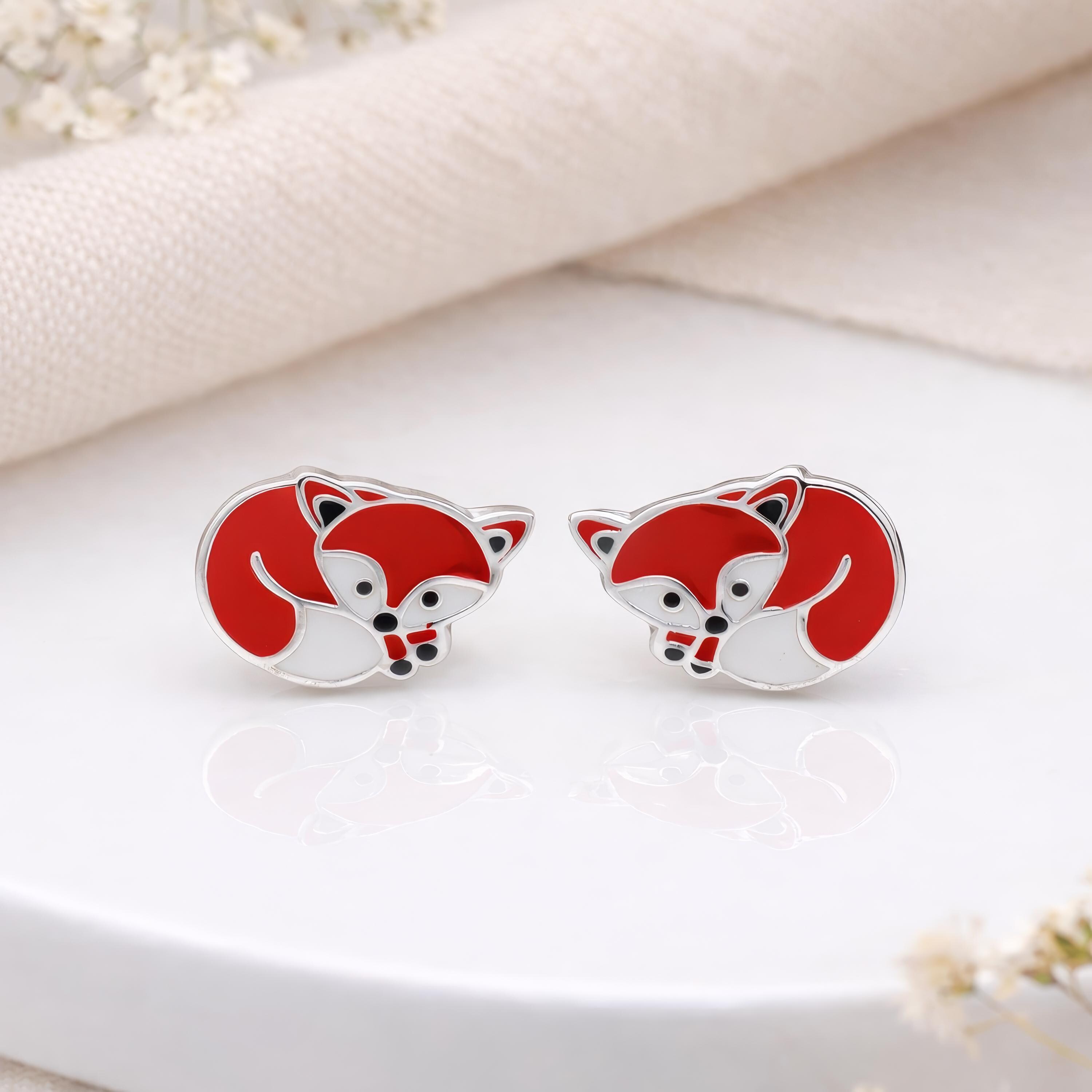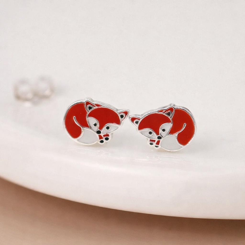 These fox stud earrings are crafted from solid 925 sterling silver and finished with vibrant red and white enamel detailing, creating a sweet woodland-inspired design full of character. Nickel free and hypoallergenic, they are gentle on sensitive ears and comfortable for everyday wear.