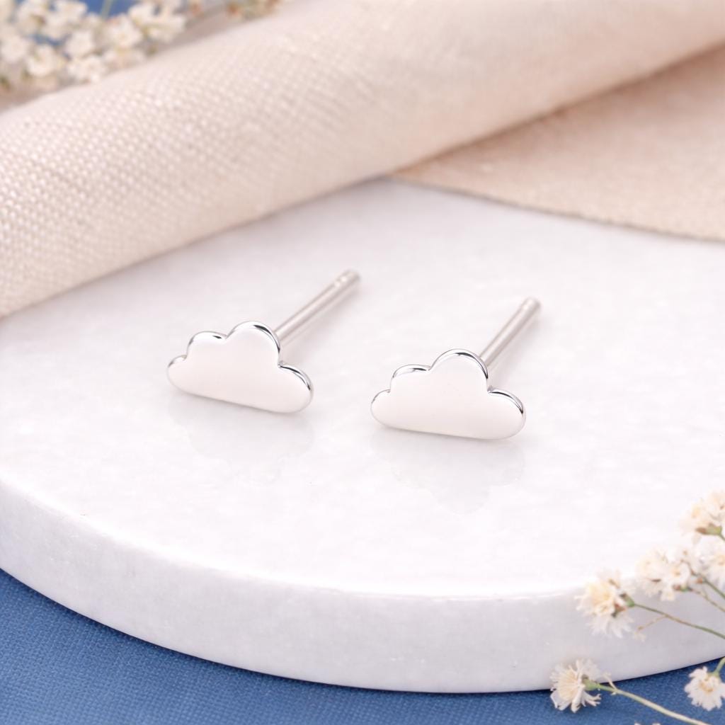 These sterling silver cloud stud earrings are handcrafted from solid 925 sterling silver and finished with a smooth, polished surface for a clean, minimalist look.
