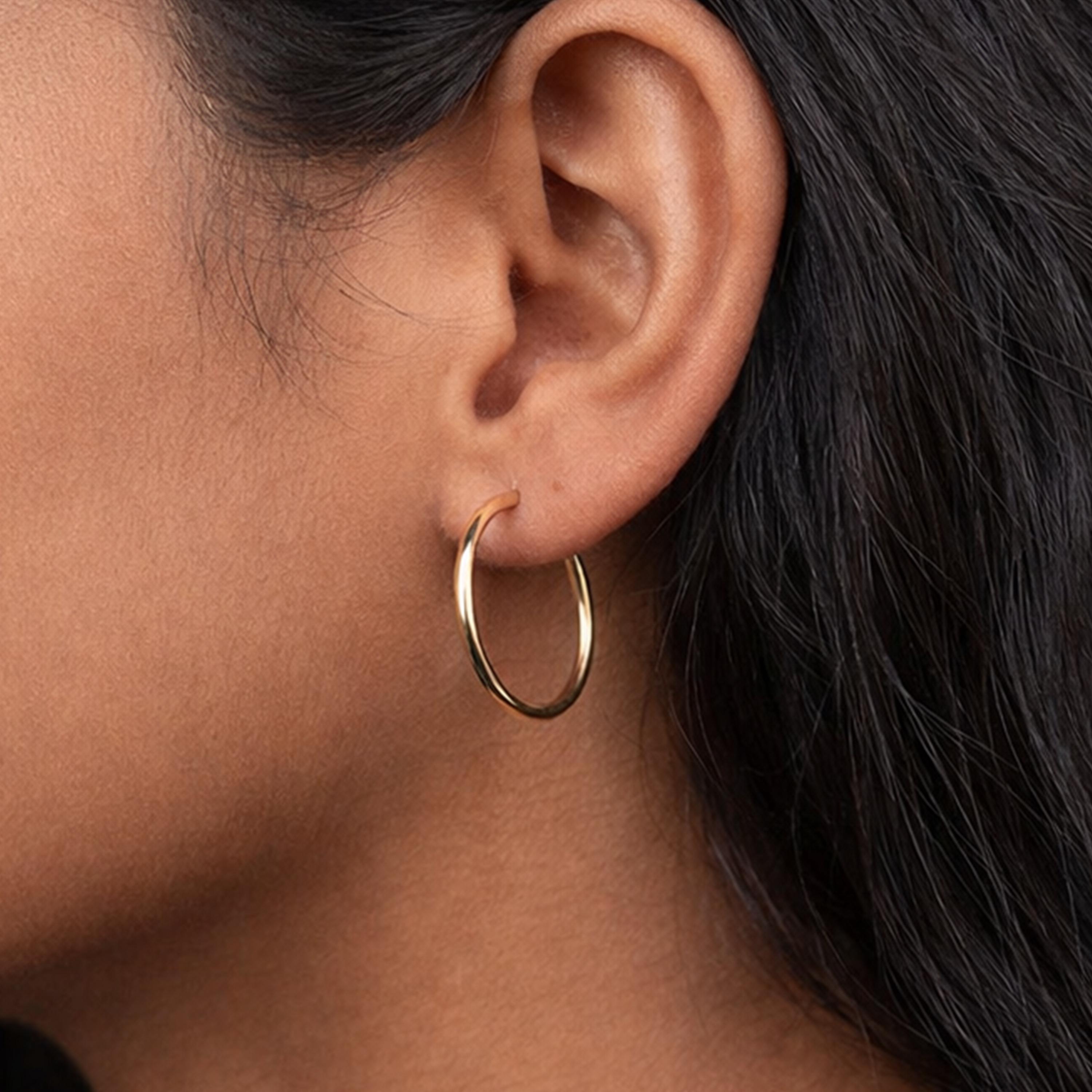 Each hoop is carefully formed to create a clean, lightweight silhouette that feels comfortable and easy to wear throughout the day. The 24mm diameter offers a beautifully balanced size, noticeable without being bold, making these hoops perfect for daily wear as well as dressed up occasions. Their classic round profile ensures they will never date.