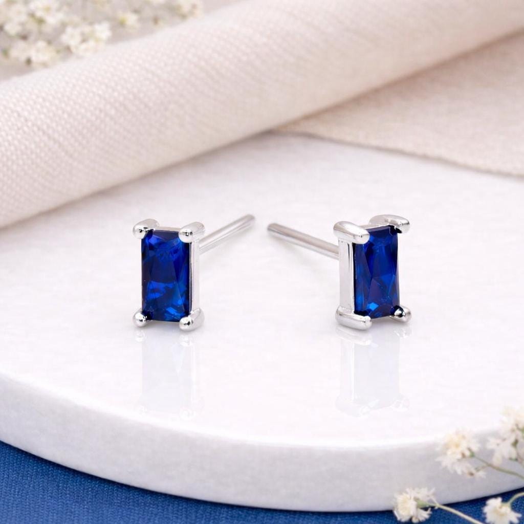 These sapphire blue baguette stud earrings are crafted from solid 925 sterling silver and set with a deep sapphire blue coloured cubic zirconia, offering a sleek, modern take on a classic gemstone style. Nickel-free and hypoallergenic, they are gentle on sensitive ears and comfortable for everyday wear.