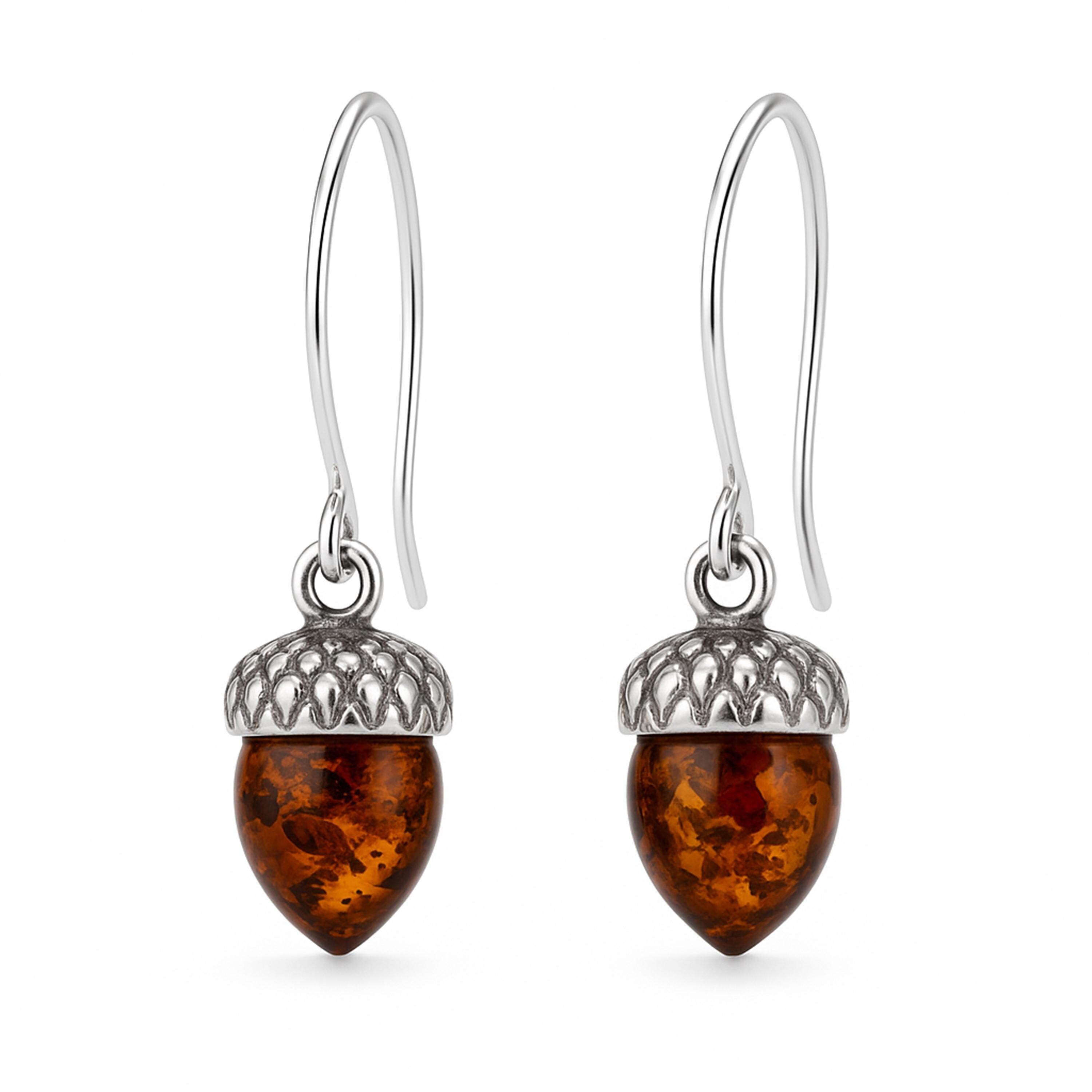 Nature-inspired and elegant — these sterling silver Baltic amber acorn drop earrings are the perfect gift for autumn lovers or anyone who adores unique jewellery.