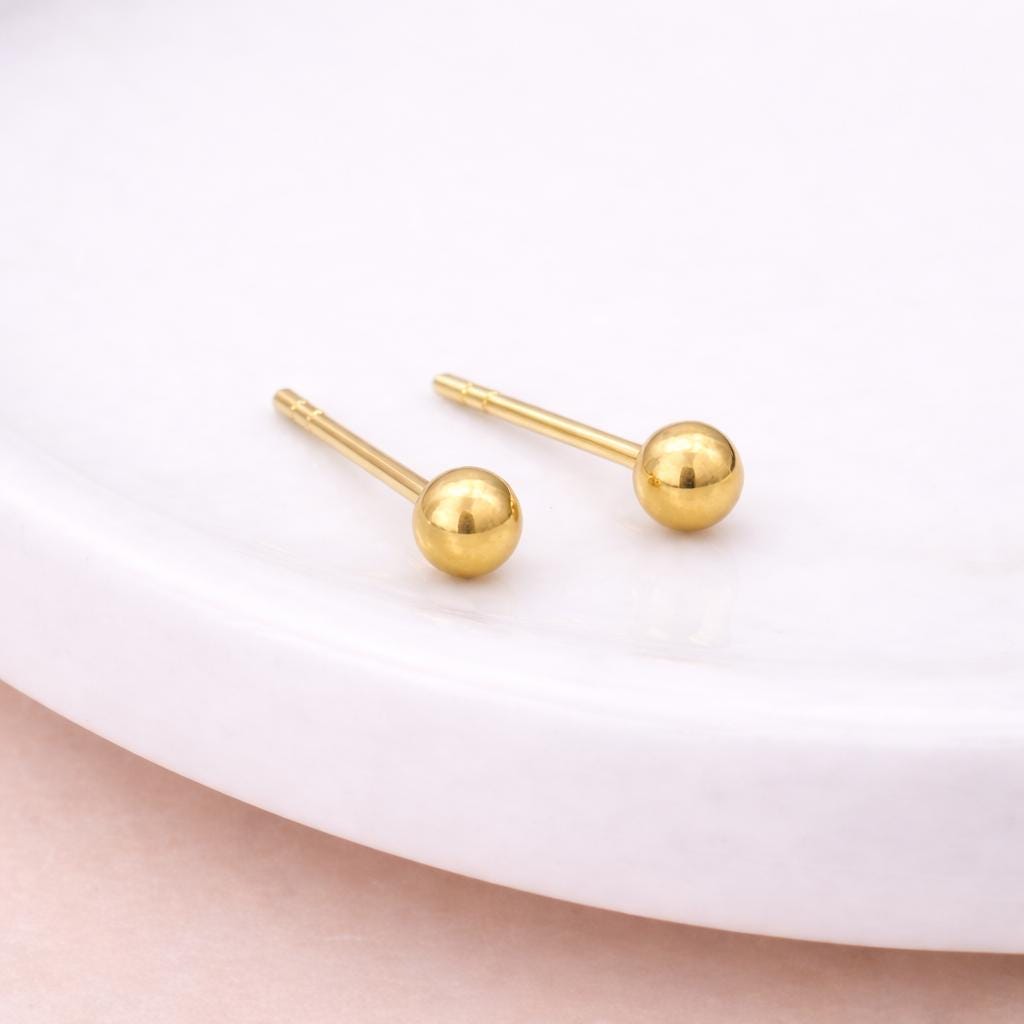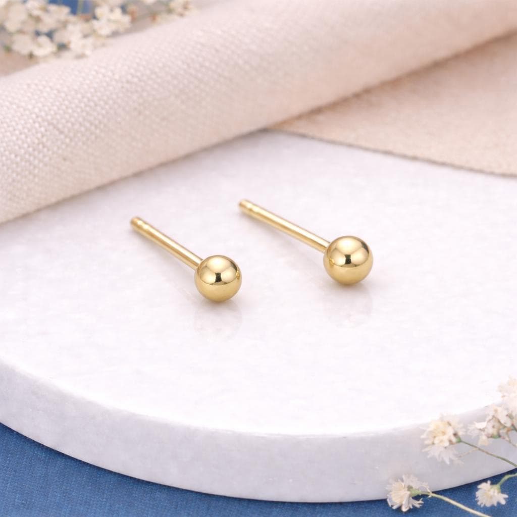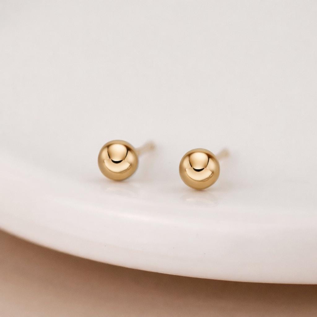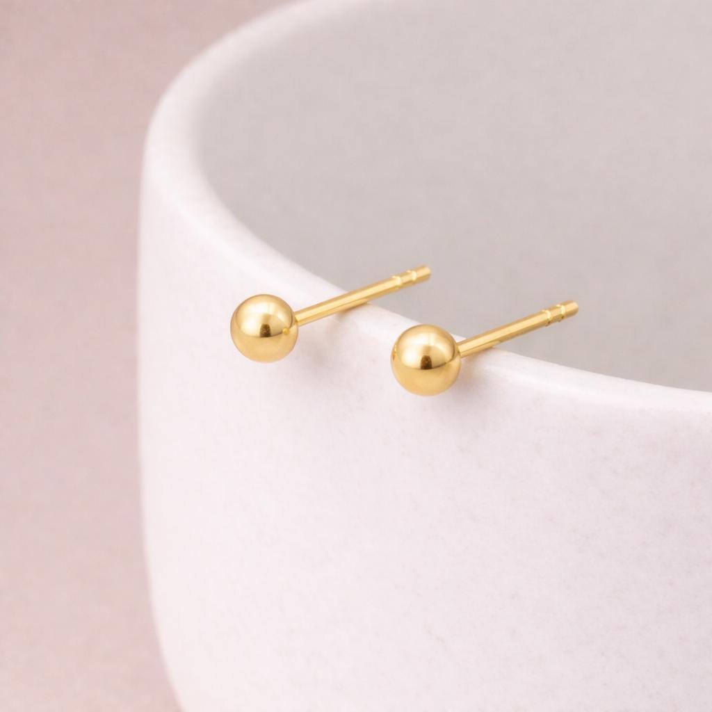 Perfectly rounded and beautifully reflective, these classic gold studs are designed for everyday wear. Their petite size makes them ideal for first or second piercings, children’s ears, or anyone who loves a subtle, minimalist look.