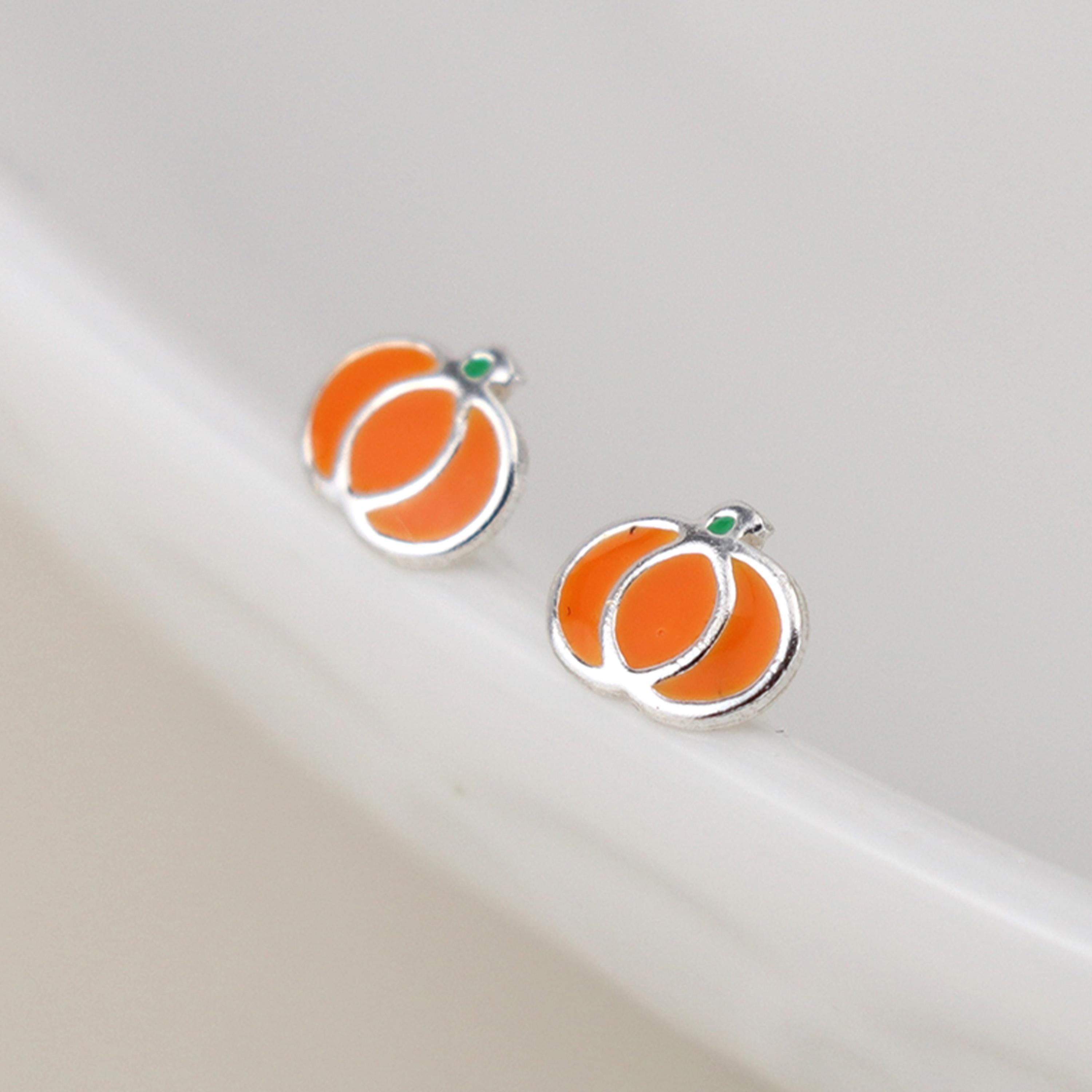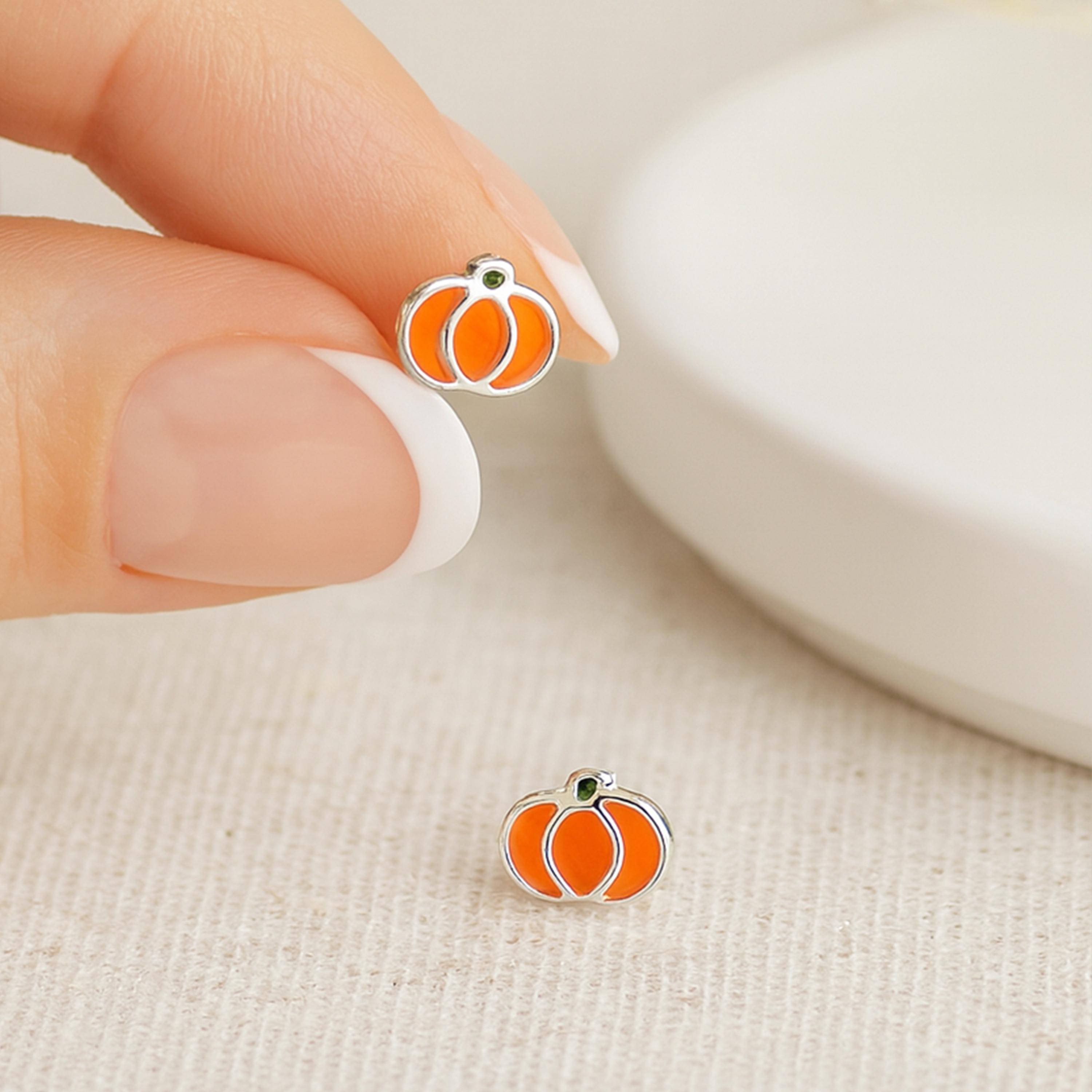 Sweet sterling silver pumpkin studs – a playful autumn accessory perfect for Halloween, cosy days, and pumpkin spice season.