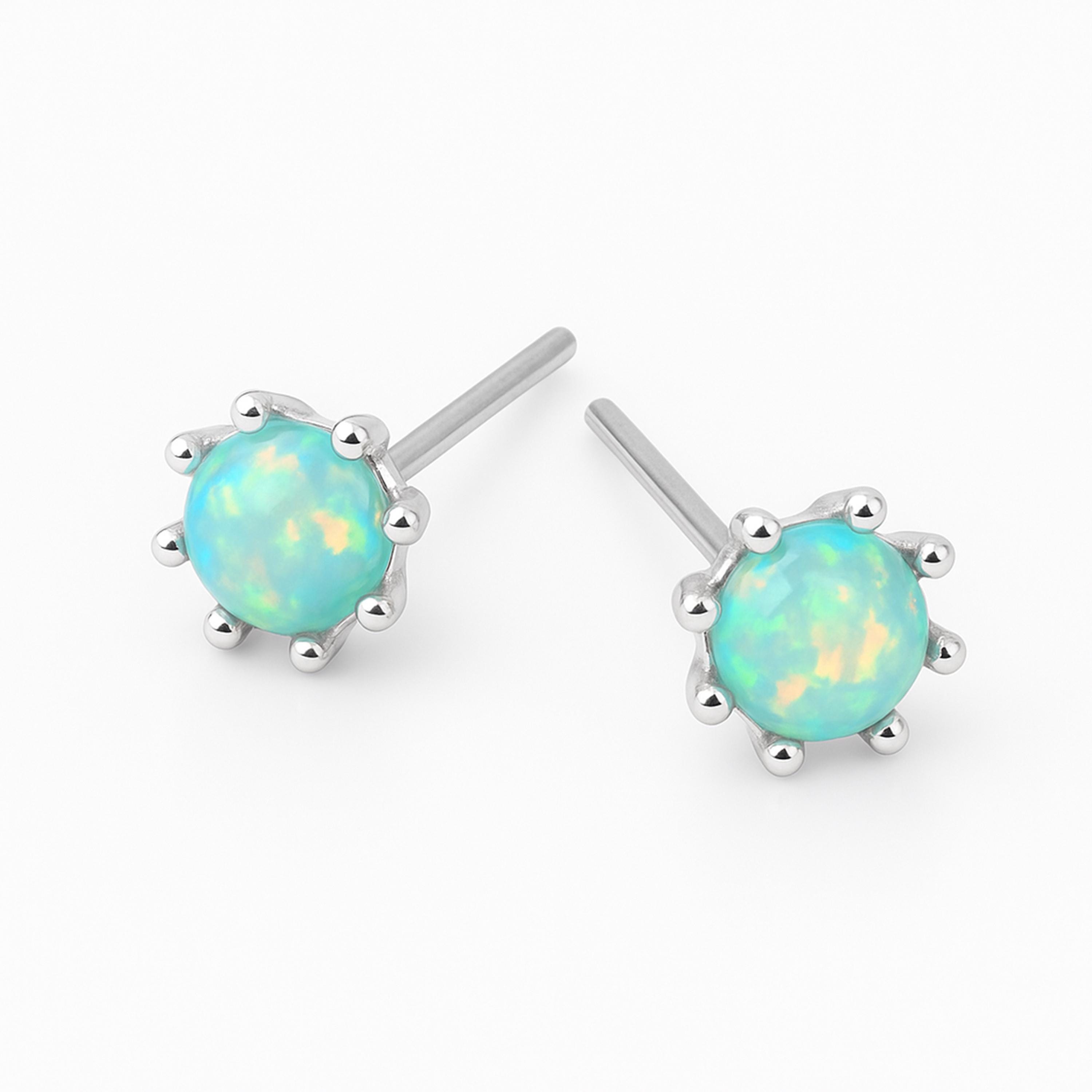 Sterling silver micro studs with shimmering green opal — a delicate, colourful design perfect for stacking or second piercings.