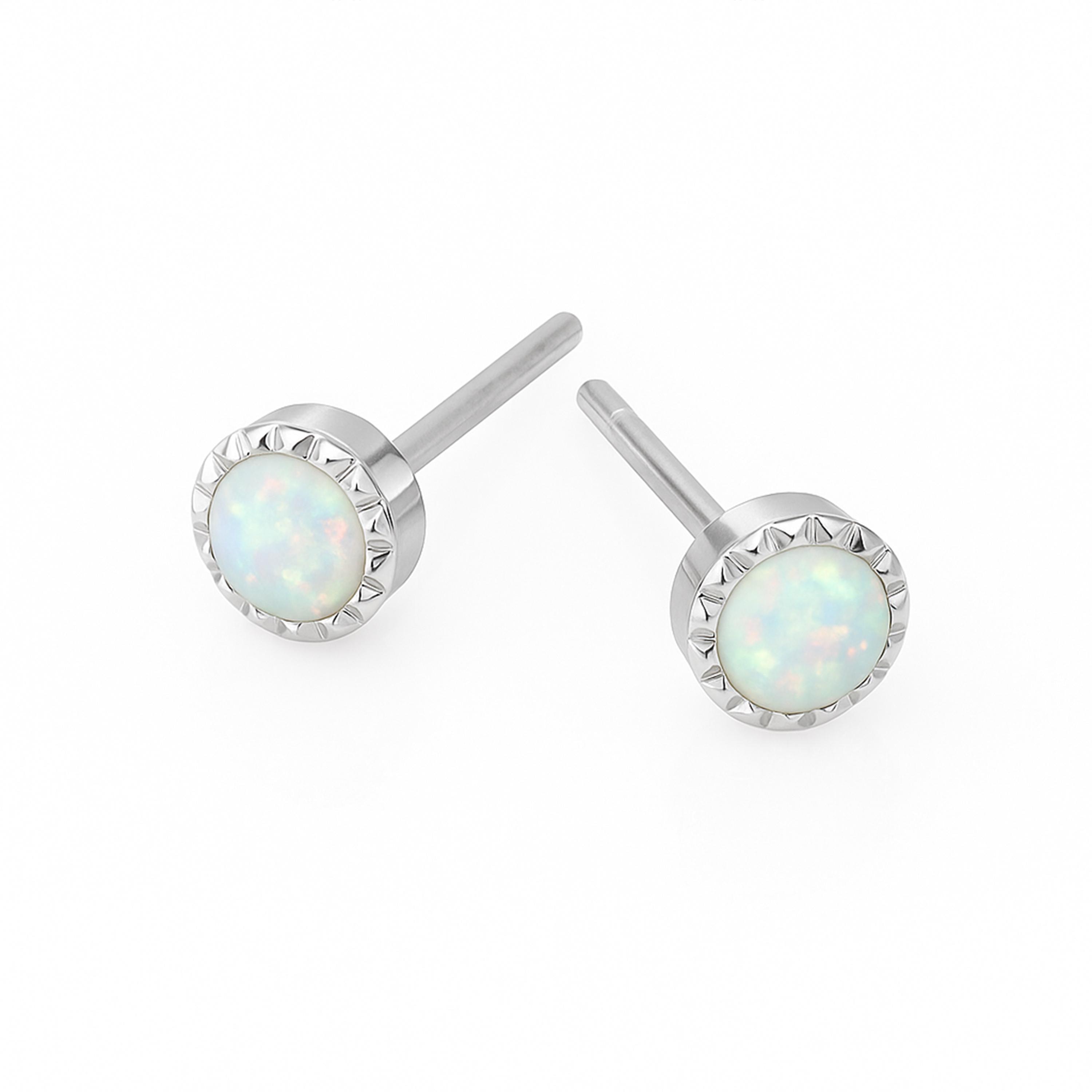 Shimmery, subtle and oh-so-lovely — these tiny white opal studs are made for everyday sparkle. Set in sterling silver with a delicate milgrain edge, they catch the light beautifully with a soft, rainbowy glow.