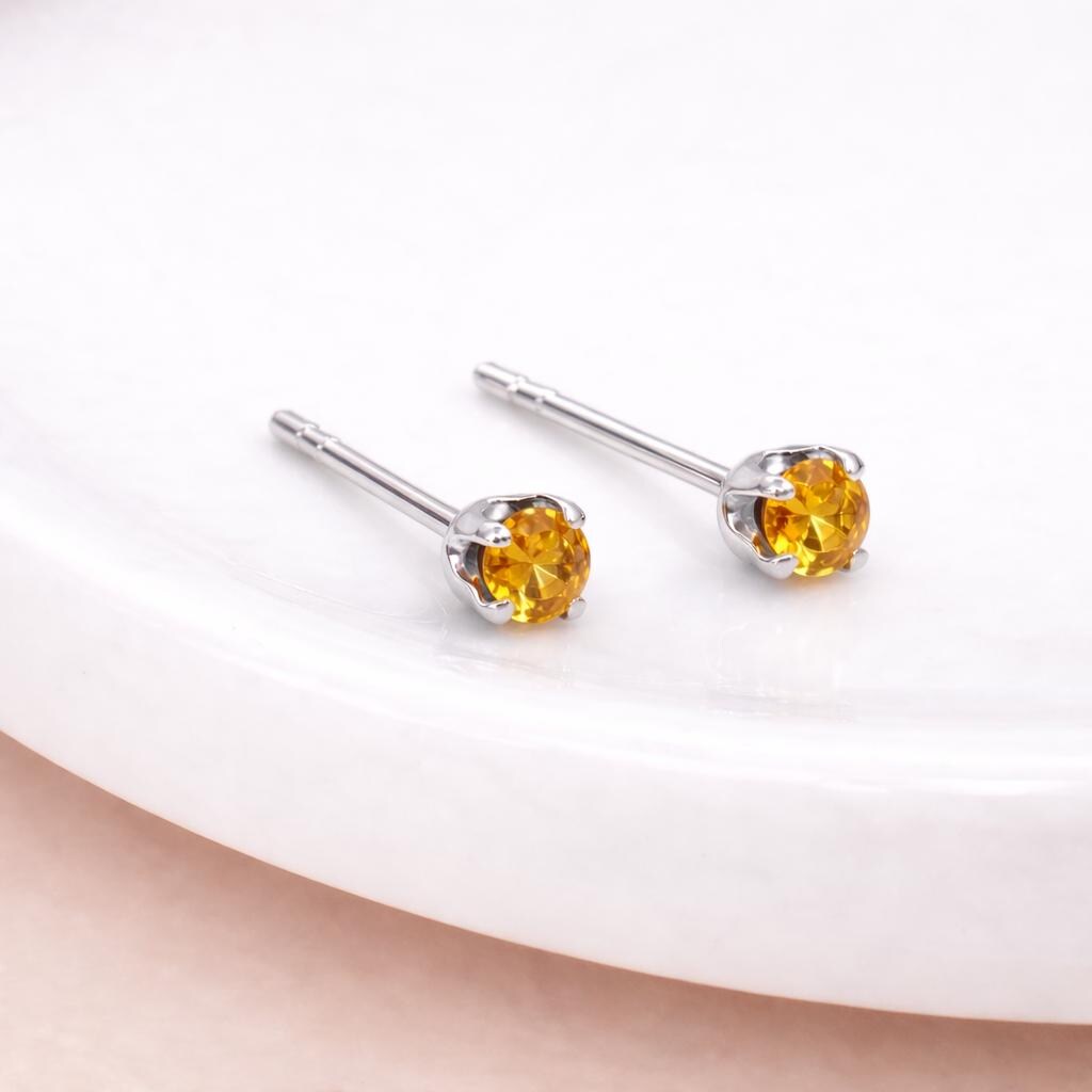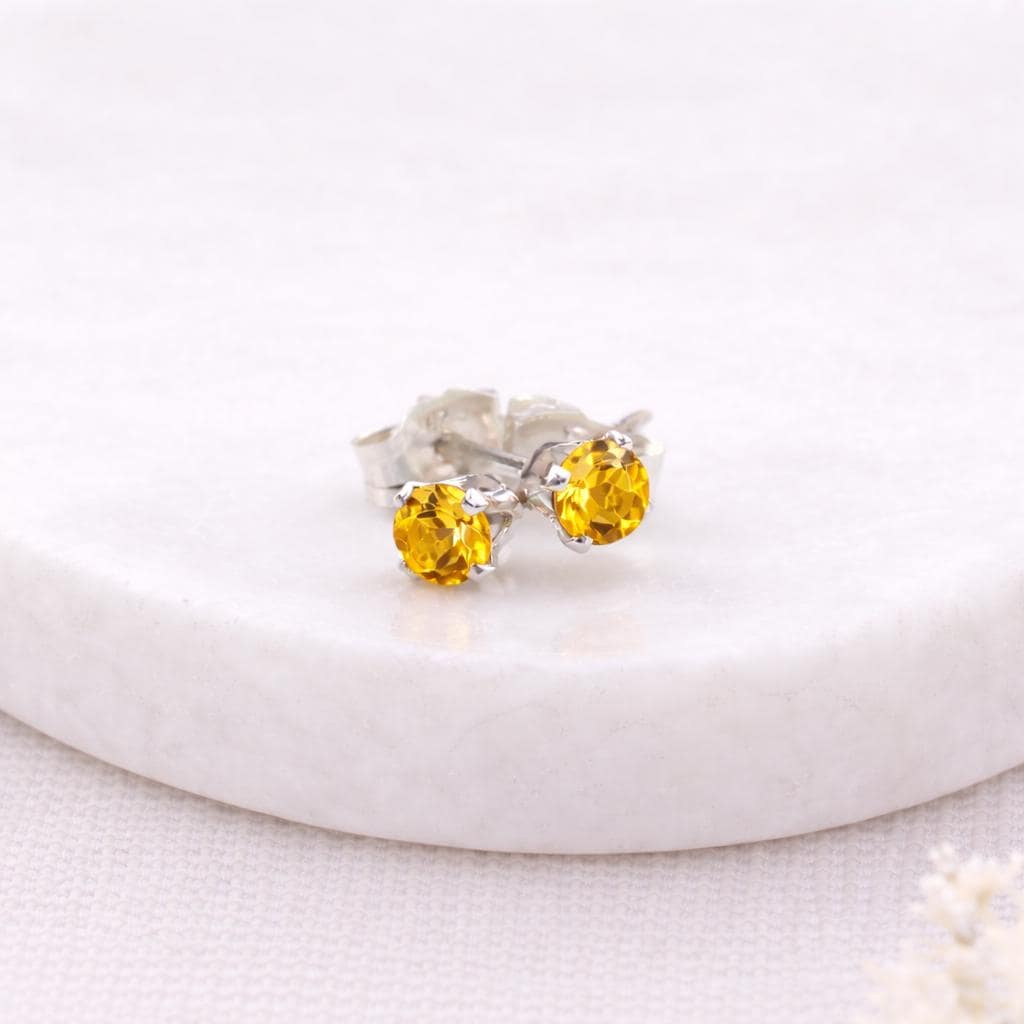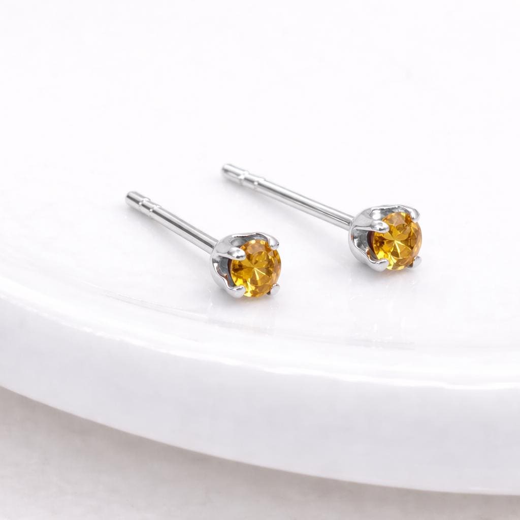 These citrine coloured stud earrings are crafted from solid 925 sterling silver and set with a glowing citrine coloured cubic zirconia, designed to reflect the warm, golden tones of citrine in a delicate, everyday style. Nickel-free and hypoallergenic, they are gentle on sensitive ears and comfortable to wear all day.