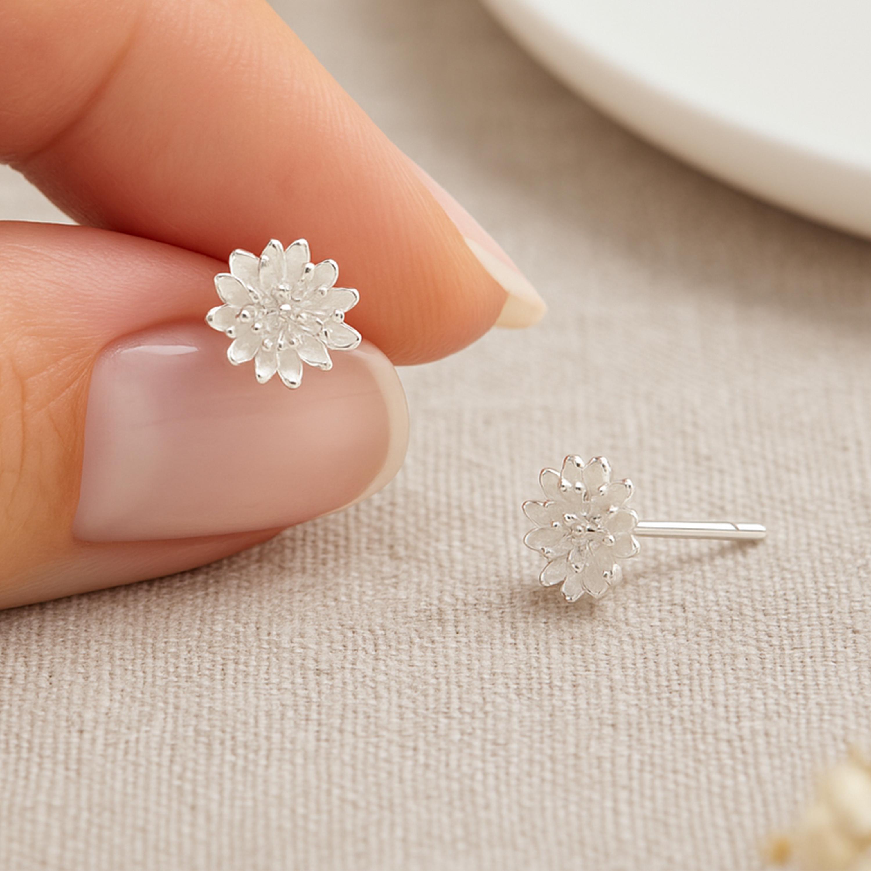 A floral tribute to strength and joy — these Sterling Silver Chrysanthemum Stud Earrings are beautifully detailed and full of meaning. Representing November’s birth flower, the chrysanthemum symbolises friendship, optimism, and longevity.
