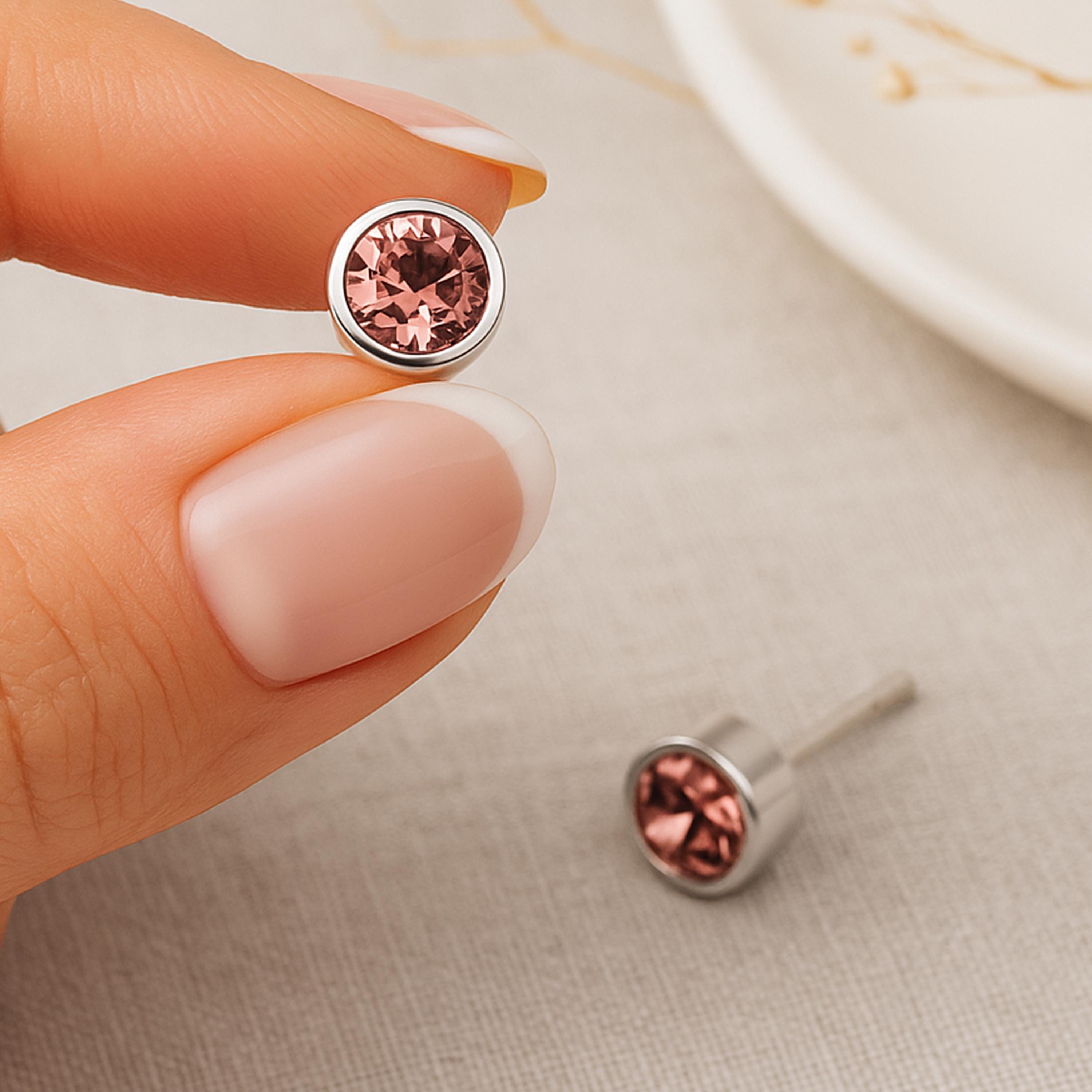 Measuring ~6.9mm across and weighing ~1.8g per pair, they offer just the right amount of shimmer for birthdays, bridesmaids, or everyday elegance.
