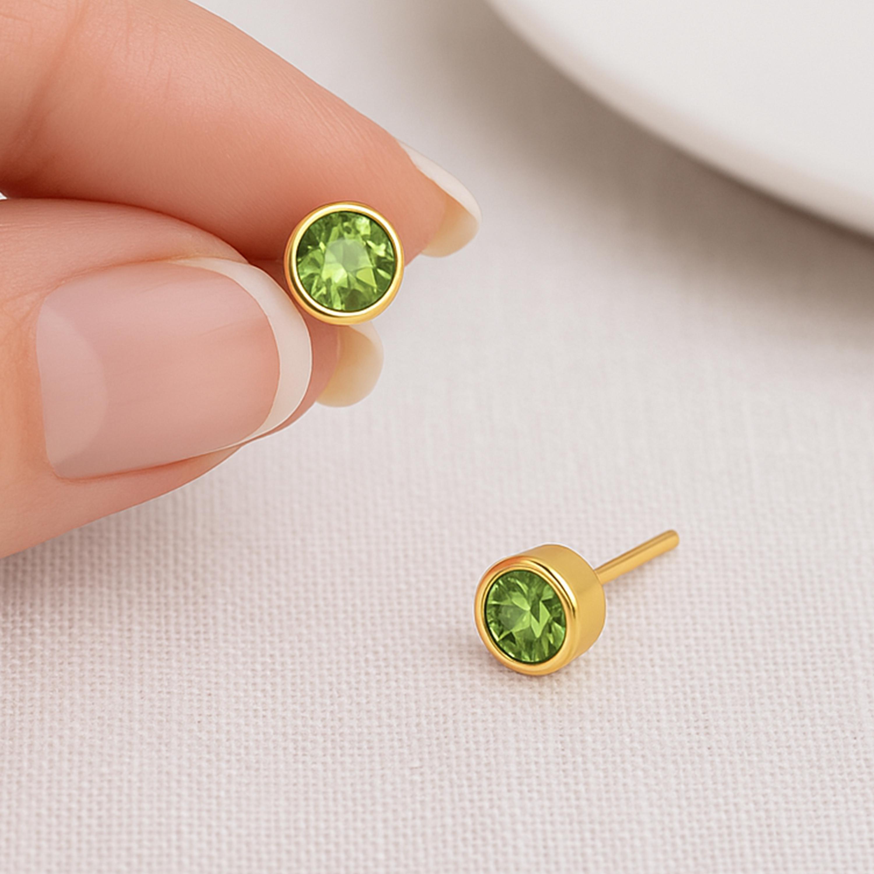 Gold-plated sterling silver studs with fresh green peridot-inspired cubic zirconia — a vibrant design celebrating the August birthstone.