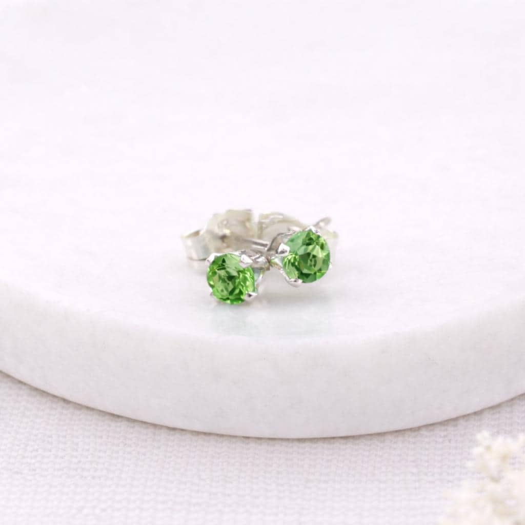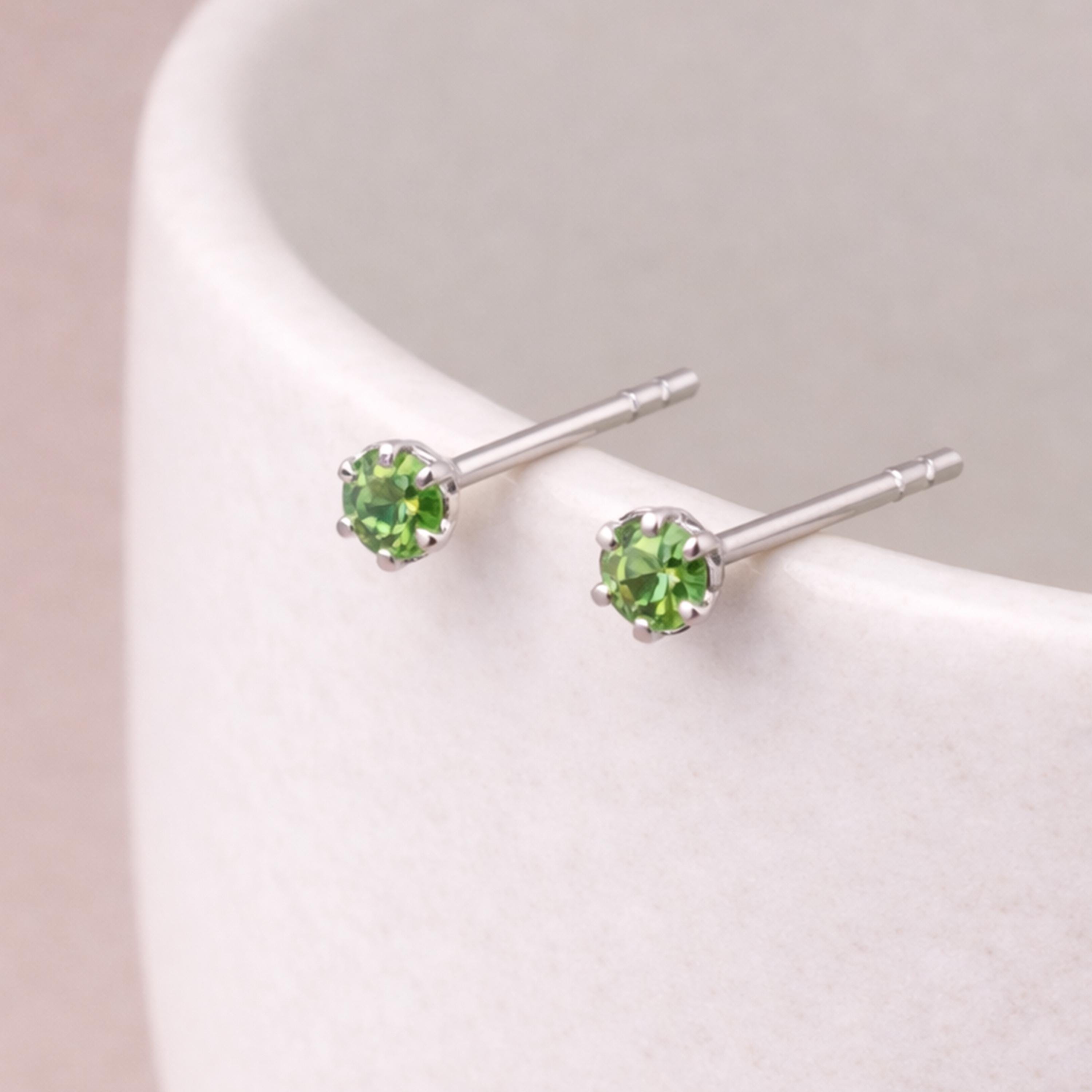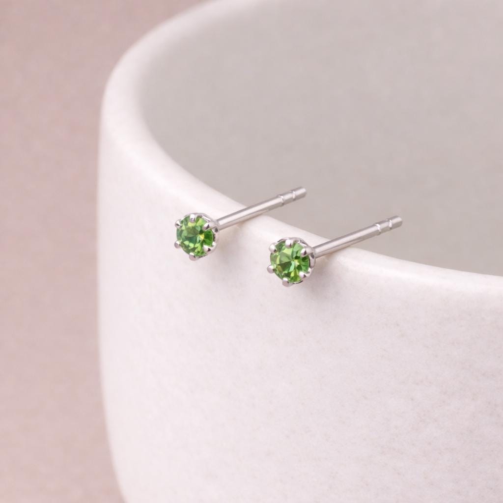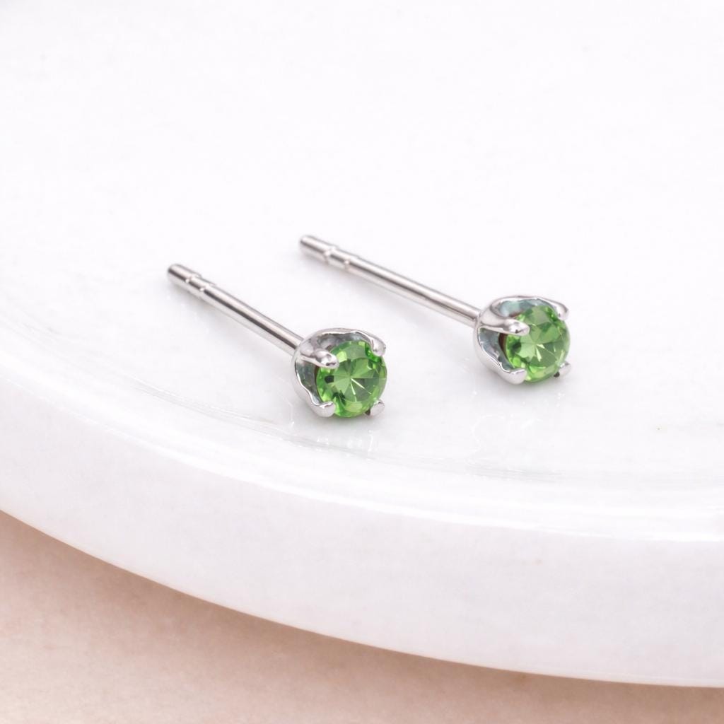 These peridot coloured stud earrings are crafted from solid 925 sterling silver and set with a vibrant green cubic zirconia, designed to reflect the fresh, uplifting look of peridot in a delicate everyday style. Nickel free and hypoallergenic, they are gentle on sensitive ears and comfortable to wear all day.