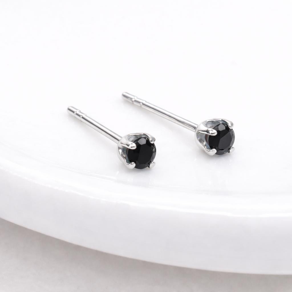 These onyx coloured stud earrings are crafted from solid 925 sterling silver and set with a deep black cubic zirconia, designed to echo the classic look of onyx in a delicate, everyday style. Nickel-free and hypoallergenic, they are gentle on sensitive ears and comfortable to wear all day.