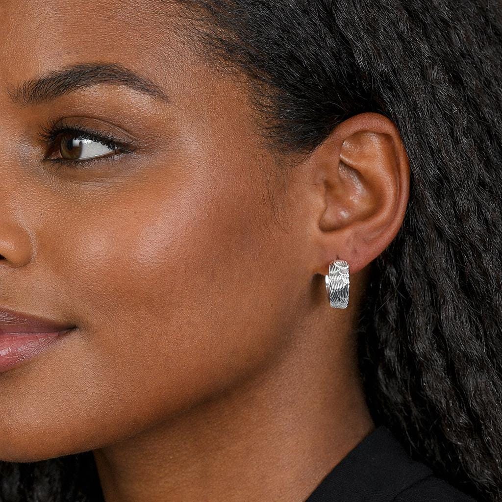 Perfect as silver huggie hoop earrings, textured silver hoops, minimalist everyday earrings, or modern small statement hoops for her, this versatile design works effortlessly from day to evening.