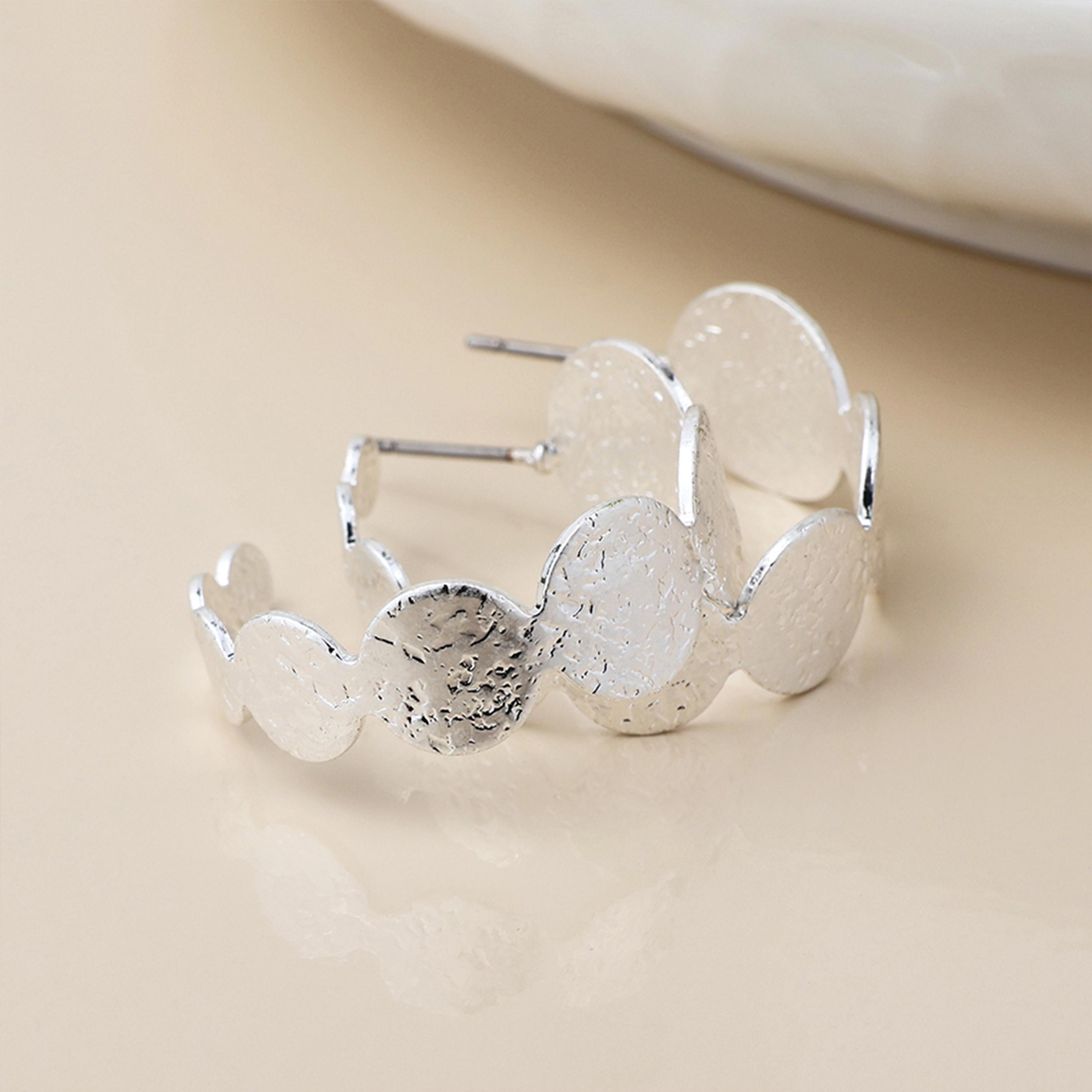 Perfect as silver statement hoop earrings, textured disc hoops, contemporary silver earrings, or bold everyday hoops for her, this design offers a modern twist on the classic hoop silhouette.