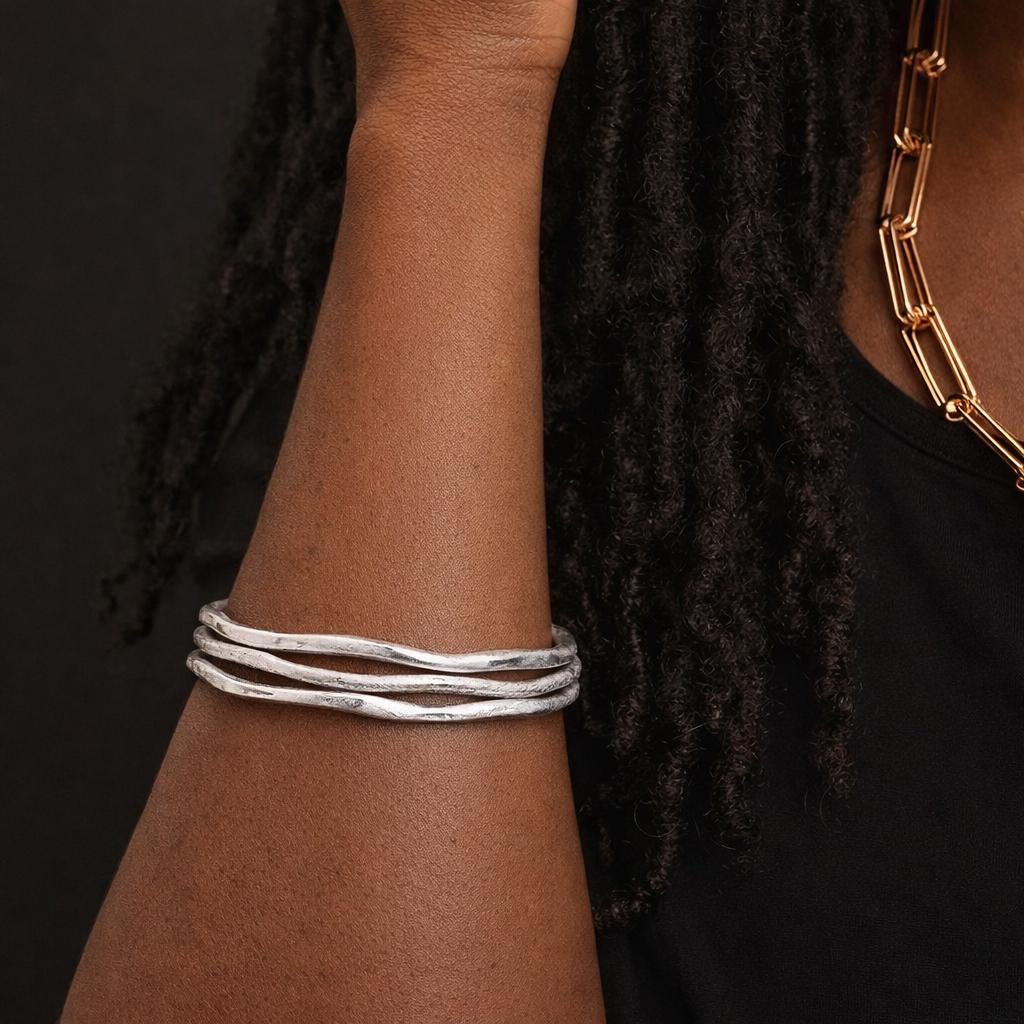 ♡ Style Tip: Stack all three for a bold, sculptural statement, or wear one alone with a sleek silver cuff for a clean, modern contrast that highlights the wave detailing.